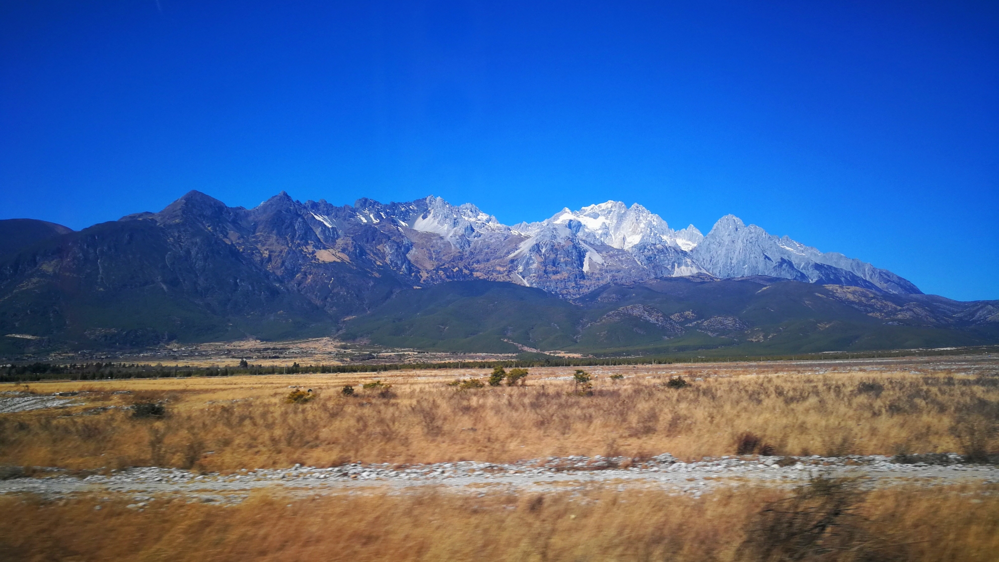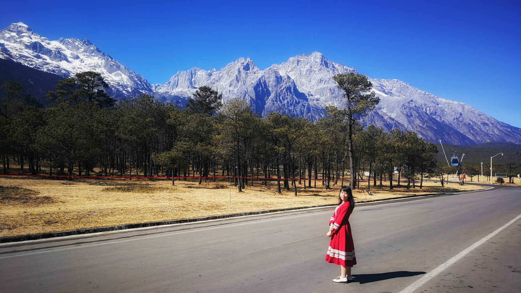 第一天的安排?一直没想好,就是那么的佛系。看了空气贝儿的贴子,长草玉龙雪山的云杉坪,当然还有在阳光下大美的蓝月谷。问我为何不去挑战玉龙雪山?一来是因为已打卡过好几座雪山,二来也不想报一天团赶赶赶,三来小伙伴并不乐意上雪山,四来也害怕真的会高反而影响后面的行程。反复的心情啊!所以果断割舍掉了。从束河滴滴到景区,70元左右。在通往雪山的路上,有好几处很适合拍照的点,可惜不能下车拍拍拍。车如入无人之境,恍惚间回到加拿大通往国家公园的感觉。旅行,真的不是单纯奔向某一个目的地,而是心灵的通达。让你暂时放空自己,因为,只有在陌生的地方,我们才会卸下所有不必要的盔甲。