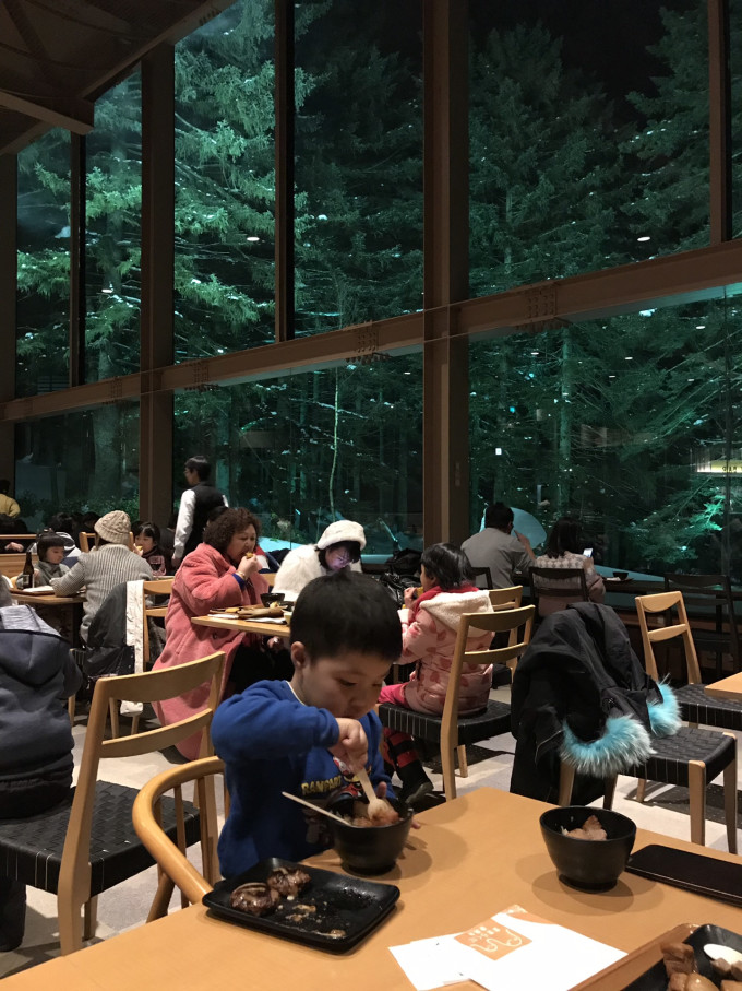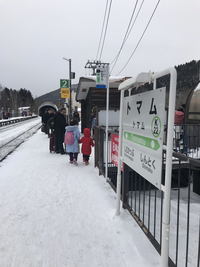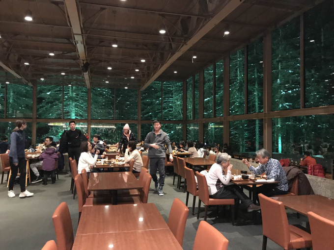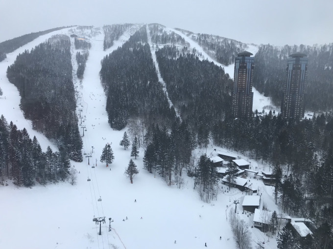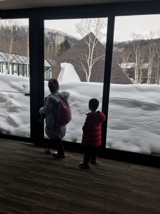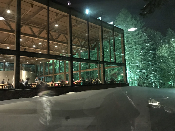 大约1.5小时后到达占冠车站。从车站到星野度假村就非常方便了,一出站就会有举着牌子的人过来接,问清楚预订酒店后就立刻人、行李分别装上大巴,前往度假村了。我们住在星野度假村塔娃酒店,大堂很低调,可以看到玻璃窗外积的雪已经一米多厚了。就像小时候看的动画片一样