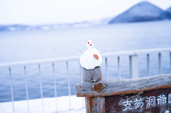 2019.1.23 沿着洞爷湖散步,在湖边观赏飘雪。