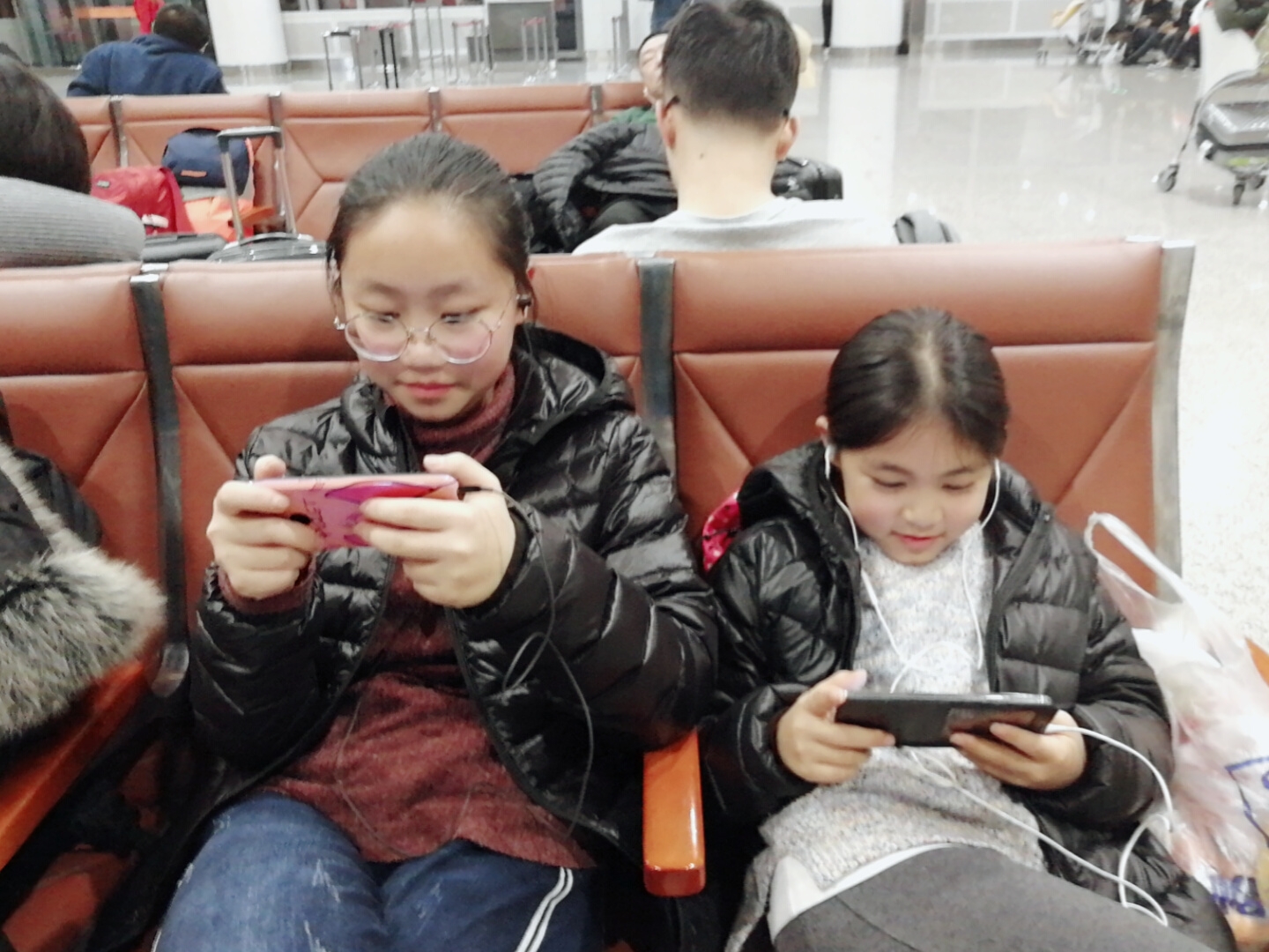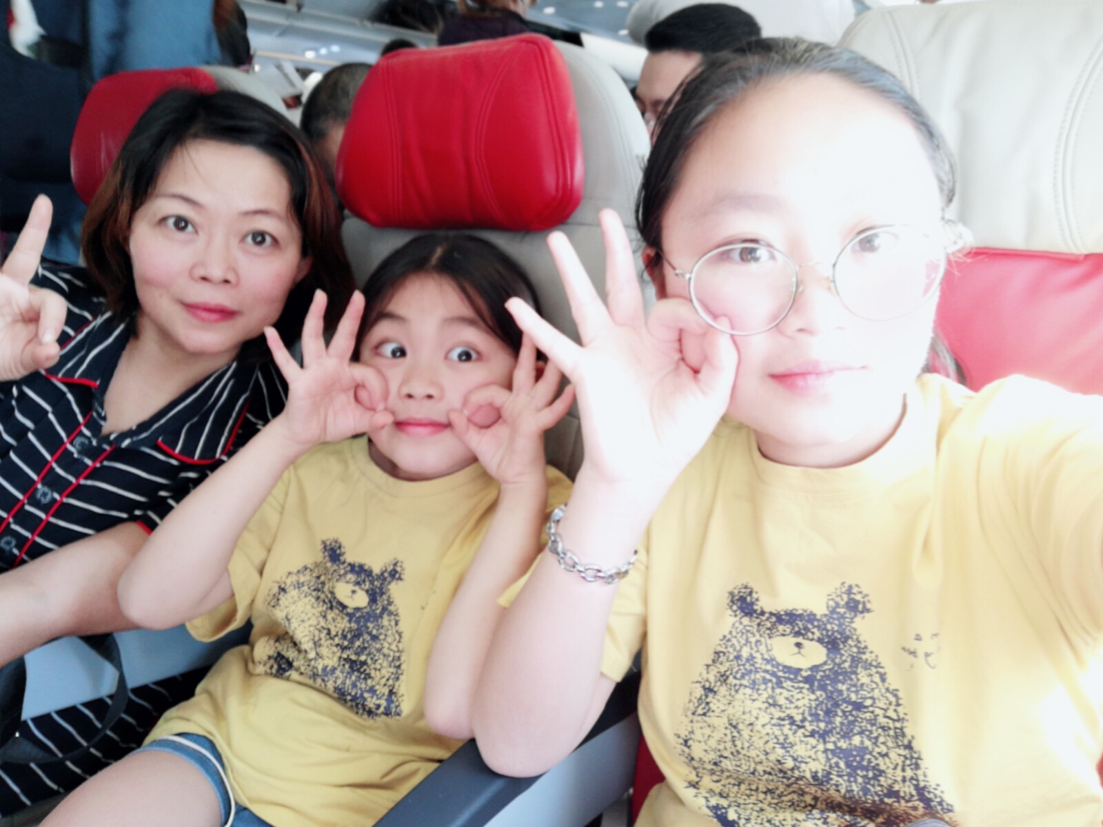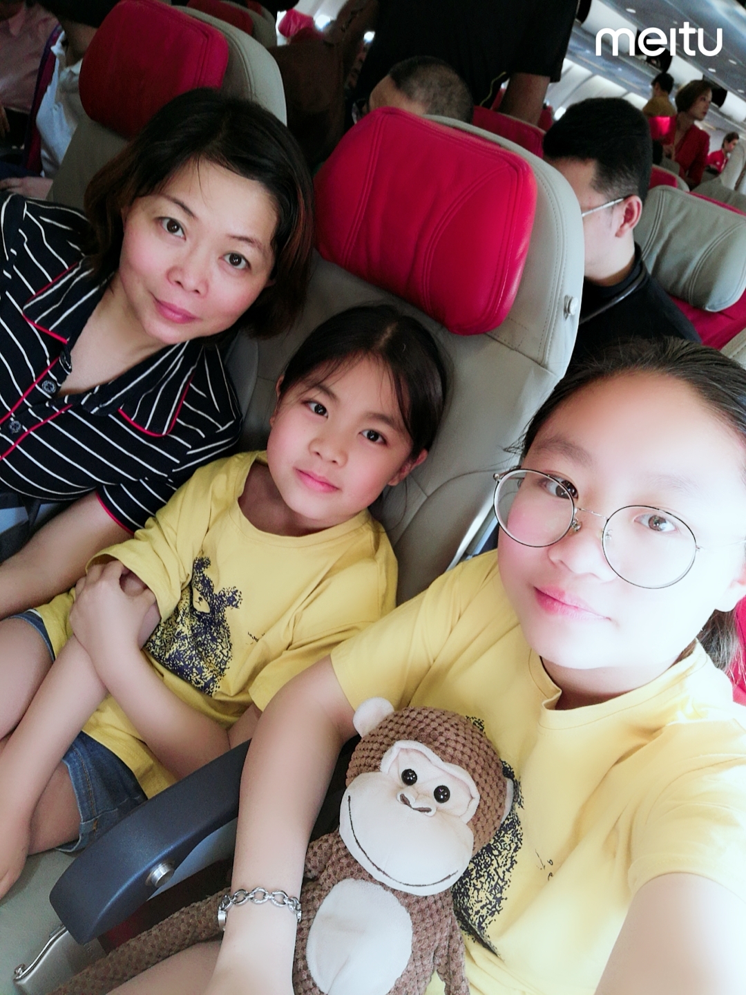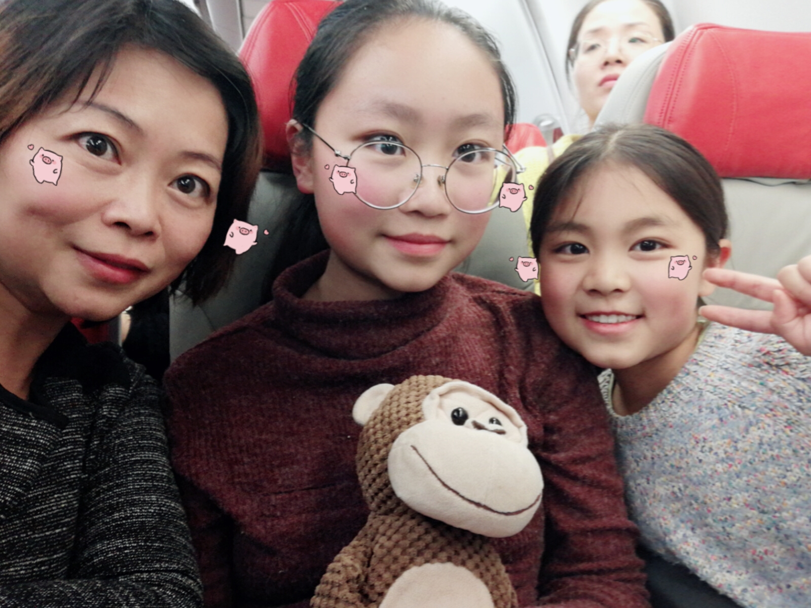 西安往返巴厘岛的直飞比较少,最后选择了往返都在吉隆坡转机的航班,顺便感受马来西亚的年味。飞机是31日00:30的,西安下雨,担心堵车,我们9点半就到机场啦。手机是个好东东,两宝看自己喜欢的电视剧,静等登机。
