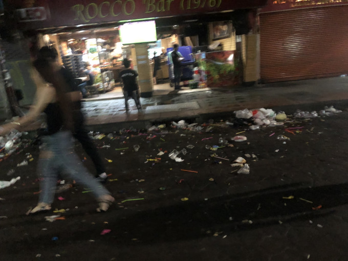 凌晨四点的曼谷考山路,经过一夜疯狂地上到处都是垃圾。