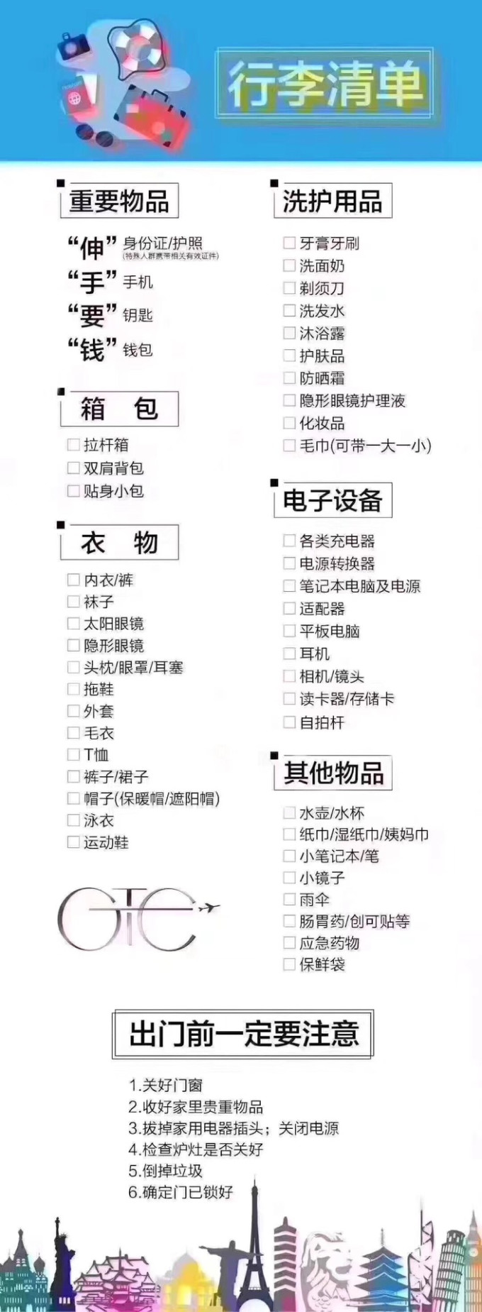 我经常忘带东西这次也忘带好多刚好朋友圈看到有人发了这个觉得适用就分享给大家