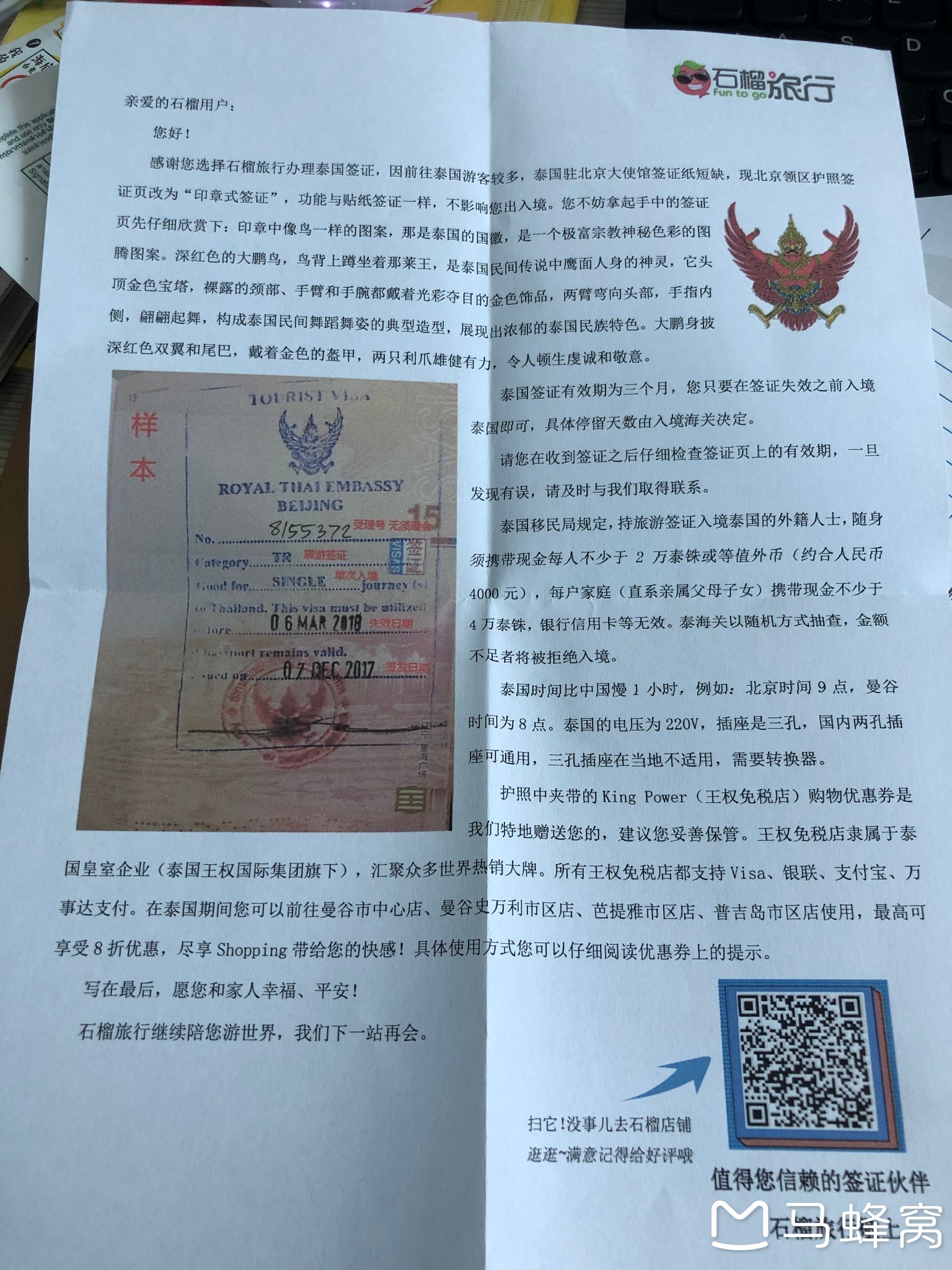 7.签证+入境卡:马蜂窝石榴旅行285元