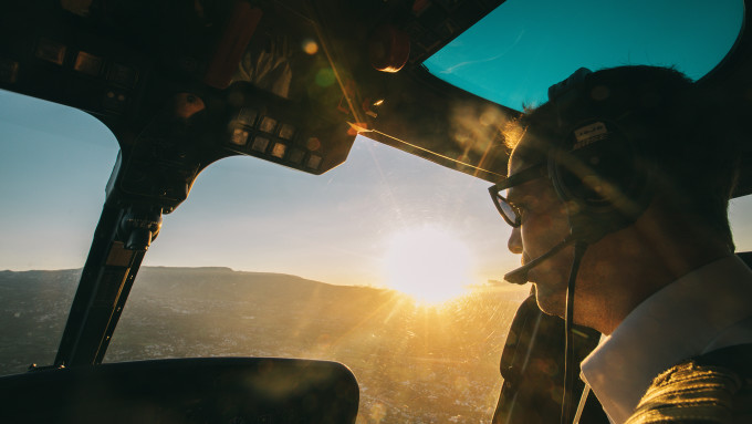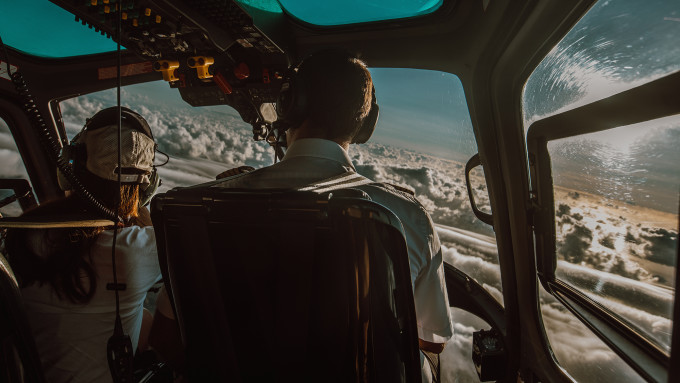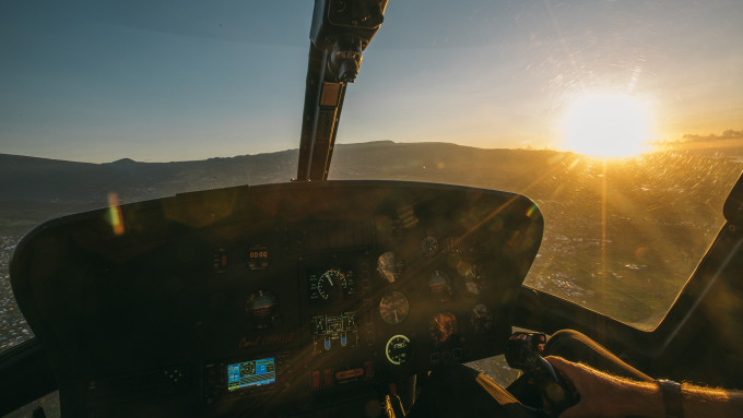 第一缕阳光升起,我们戴上耳机落位就坐,螺旋桨慢慢旋转发出轰轰的响声。机长开始呼叫各位组员,大家可以通过耳麦可以听到机长亲切的声音,喜悦与兴奋都无以言表。一切就绪,我们腾空起飞,迎着阳光的方向,一切在脚下慢慢延展开来。
