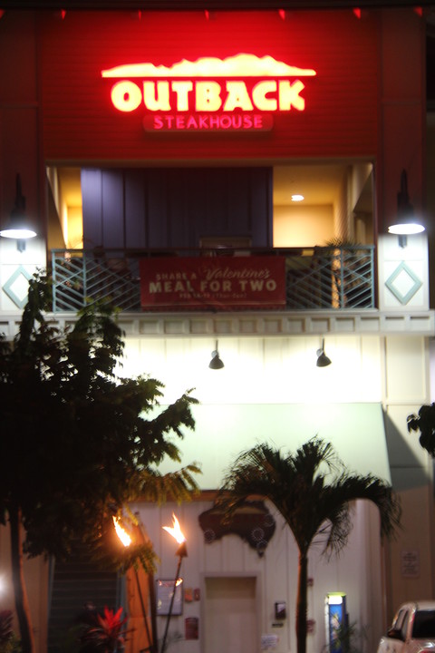 去酒店的时候路过了一家Outback牛排店(/poi/5504609.html),这架牛排店在国内的时候就听同学推荐过,上次去美西的时候也经常遇见,是一家连锁店,离我们住的酒店也不远,因此,晚上就决定在这里吃了。
