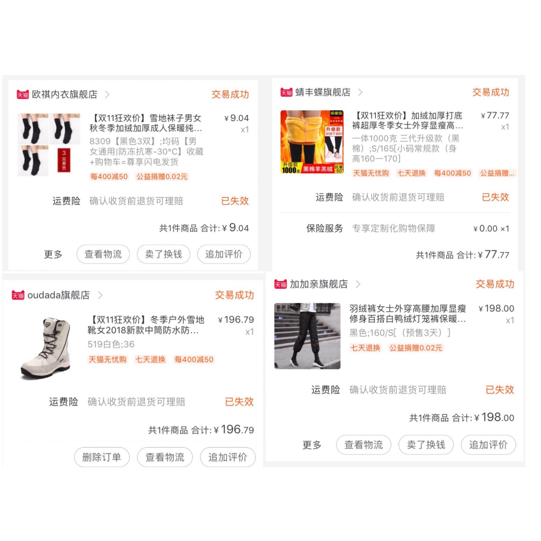 上身:秋衣+加绒秋衣+毛衣+羽绒服