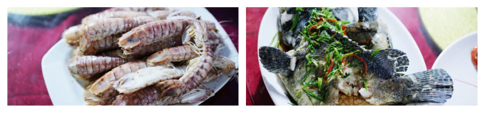 欣赏完壮美的日落,当然该轮到美食伺候了,在度假村里,有一家很出名的餐厅:疍家乐渔排海鲜餐厅,整座餐厅是搭在渔排上的,很有特色,价格较美好,味道不错,渔港对岸的居民也常坐船来这儿吃,虾、鱼、贝、沙虫、野菜等等,还有各种家常味道都还不错。