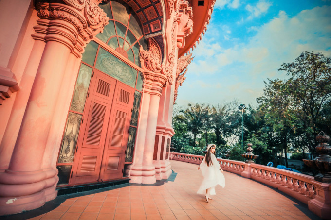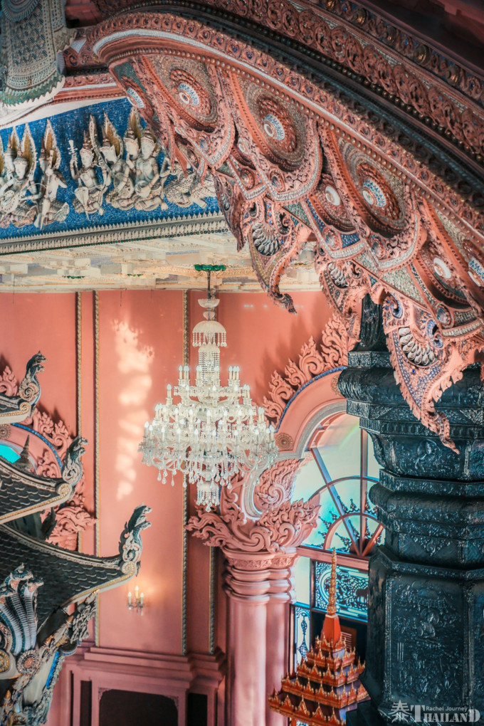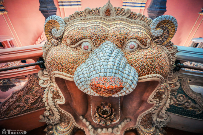 由于三头神像博物馆的主建筑是粉色的,所以人们也习惯性称其为“粉象博物馆”。我们先在外围的长廊上拍了一圈,然后进入主殿参观。进入主殿之后,迎面而来的是富丽堂皇的大殿。每个细节都堪称一绝,像艺术极品,雕梁画栋,美不胜收,令人眼花缭乱。