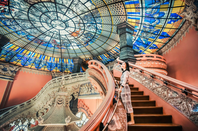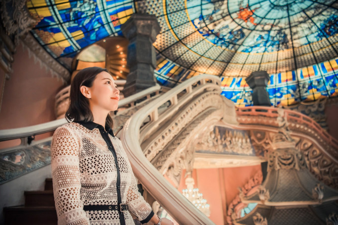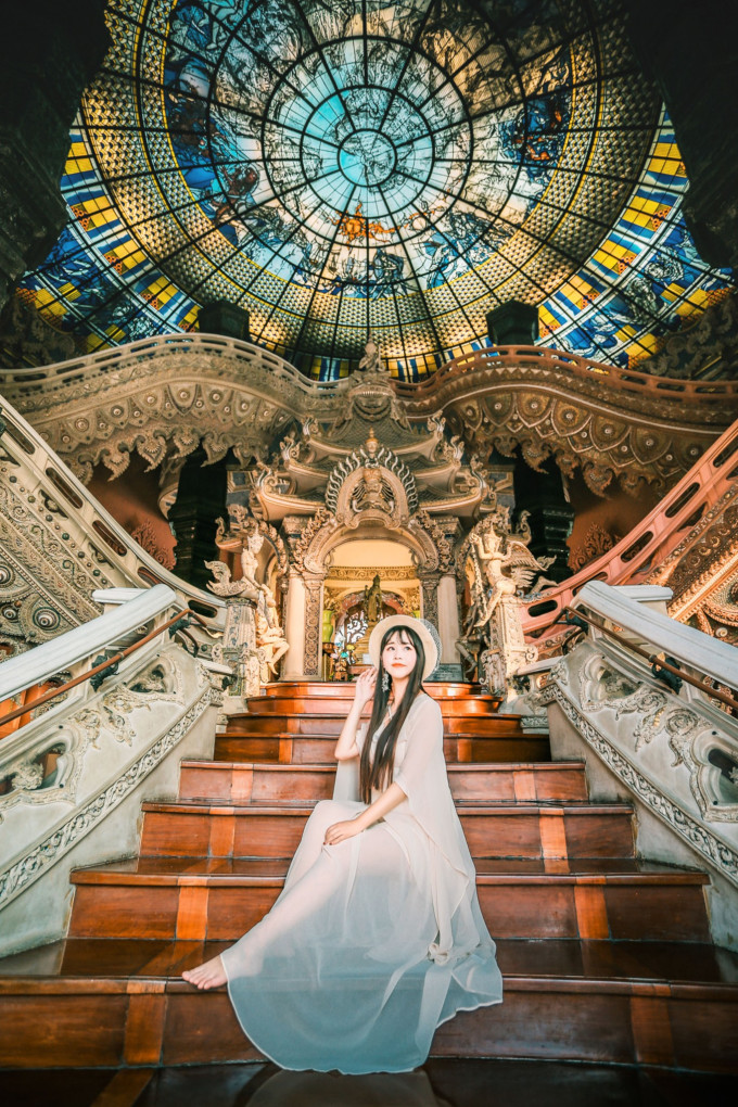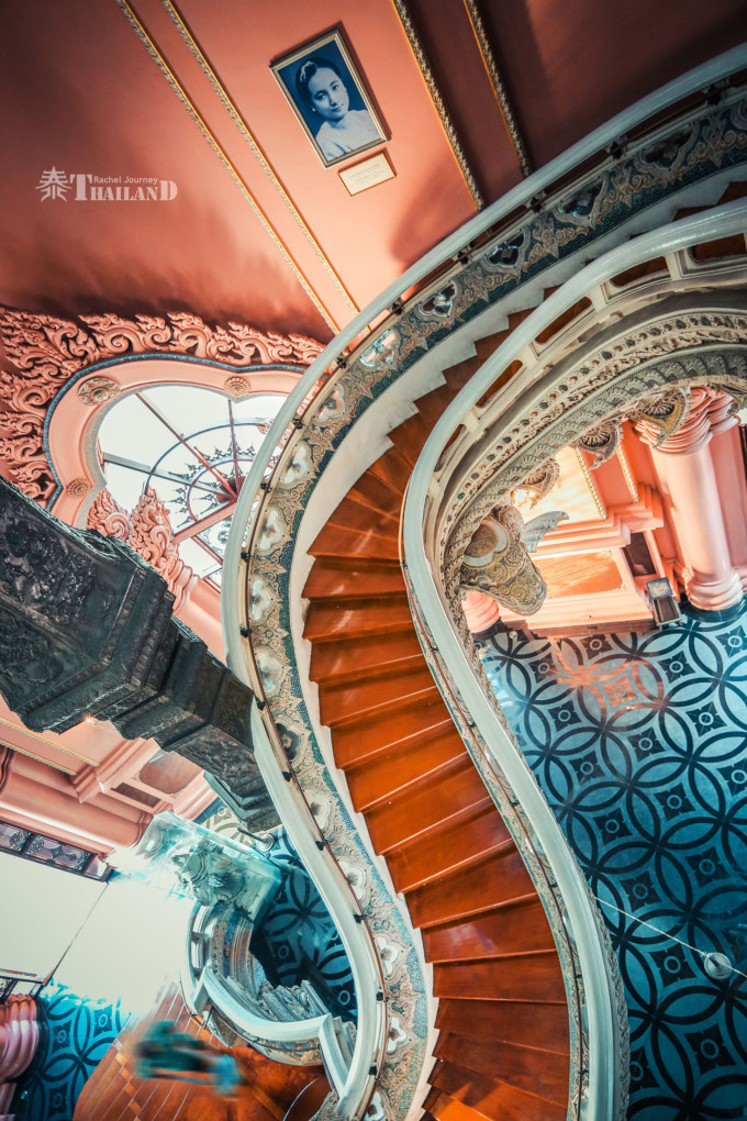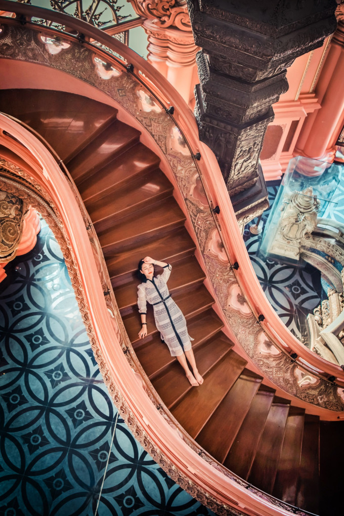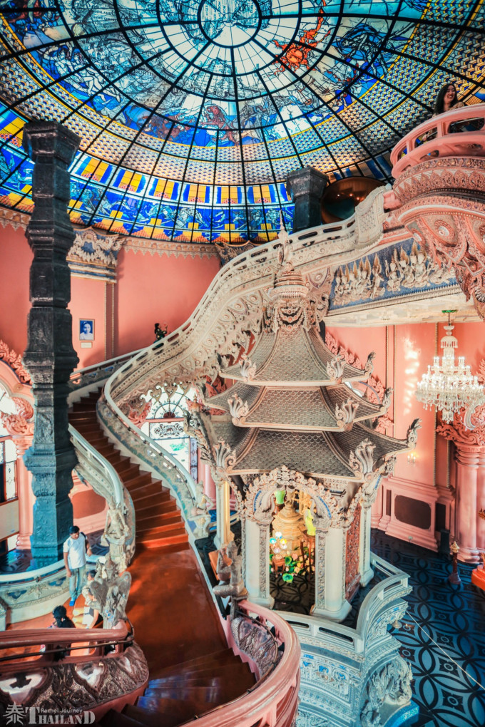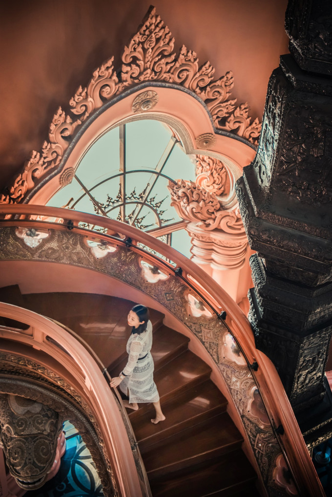 大殿内的两条S型楼梯,是拍照的好地方,会有络绎不绝的游人在此等待最佳机位,一定要有耐心哦!细细品味会发现,一边是粉色,一边是白色,这两种颜色搭配在一起,很难让少女们不爱上!