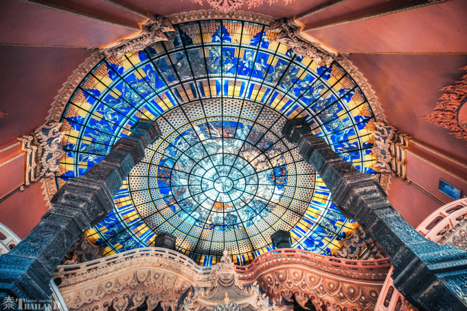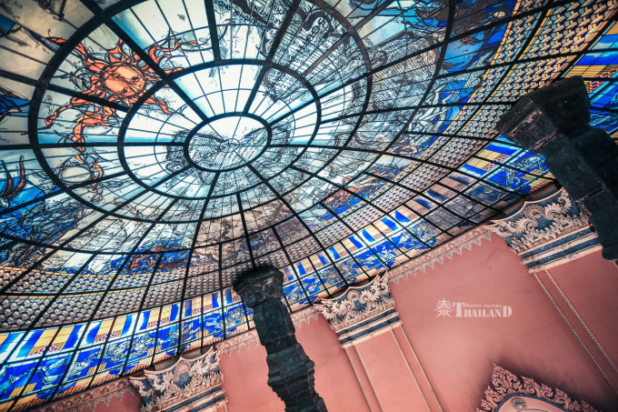 感觉有神光照耀,于是抬头向上看,被绚丽的天花板所深深吸引。天花板是西方彩绘玻璃搭配世界地图和十二宫图,优美的神迹和四支梁柱,均描述宗教故事和世界和平的真实含义。同时,这天花板也让我想到了台湾高雄的美丽岛捷运站,只是穹顶的内容不太一样,不过感觉这一处是更加震撼。
