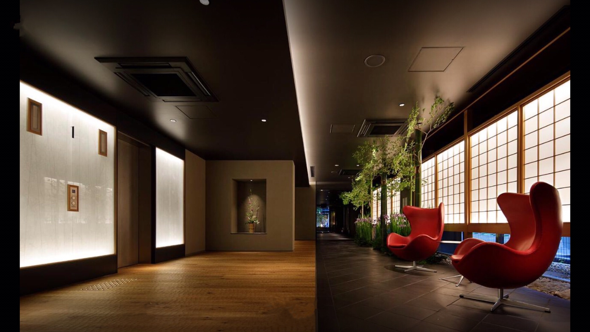 三条河原町瑞索酒店进门的长廊。(夜间手机拍摄,光线不足,实际上这个酒店很有设计感)