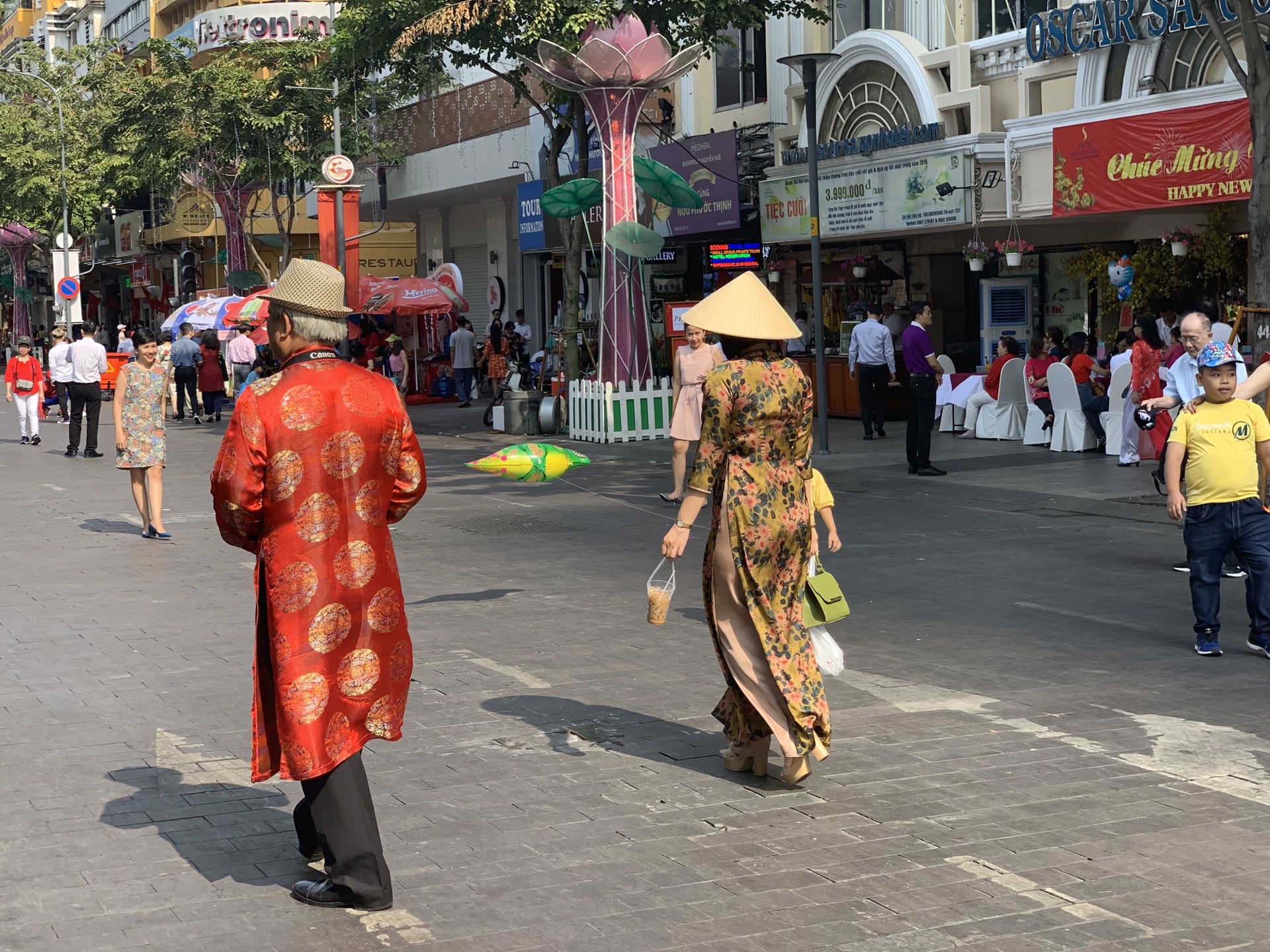 但,也并非一无是处,一路上碰到越南人都很nice,越是市井也越接地气。大概是越南也在过春节的缘故,白天他们穿上奥黛,打扮的精致无比上街拍照,晚上在街边咖啡店夜宵摊排队。每个人都闲散的活着,大概是除了新加坡以外所有东南亚国家的日常。