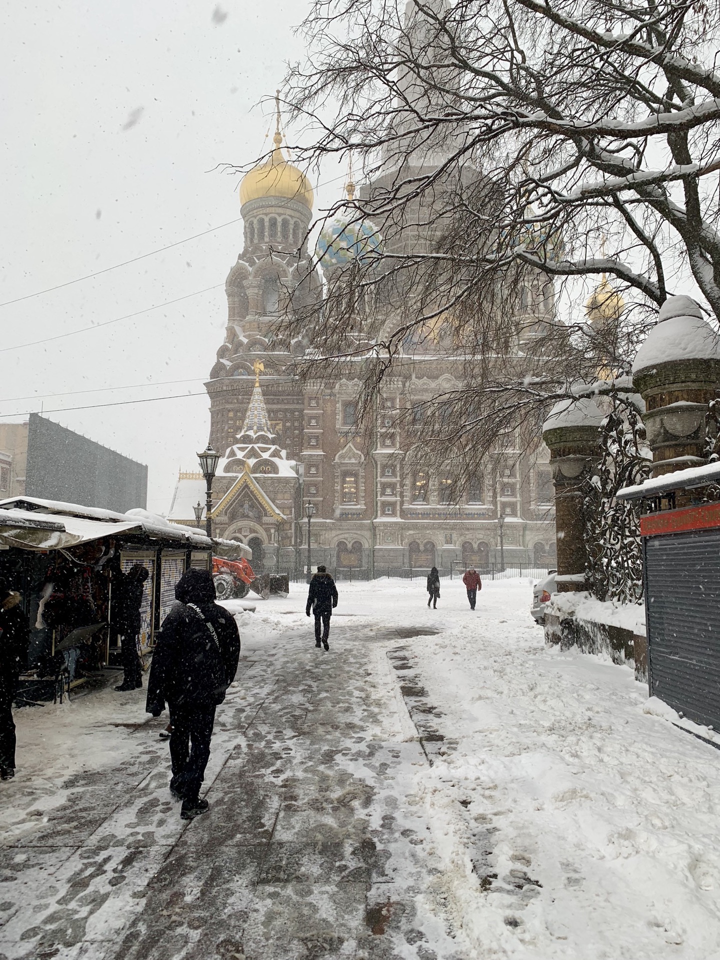 冬季的圣彼得堡积雪很厚,路边不太好走,容易滑倒;如果三人、四人出行的话我建议还是打车吧;超过2KM打车毫不犹豫;