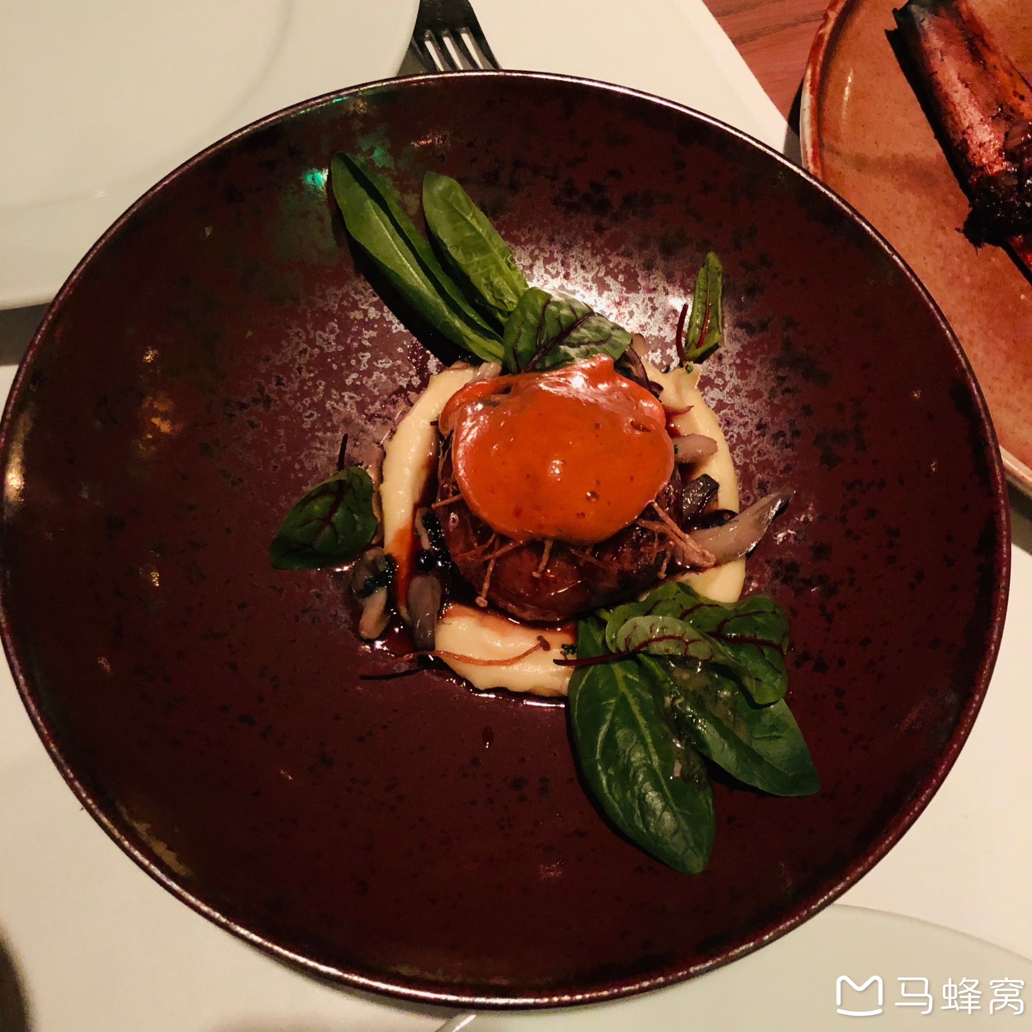 里面还有蘑菇,下面是土豆泥,上面说是烤小龙虾酱,非常嫩滑,不像一般的肉饼那种柴柴的口感,但不觉得酱和小龙虾有什么关系,更像是某种烤肉酱,或者是用来烤小龙虾的酱,而不是小龙虾的酱吧