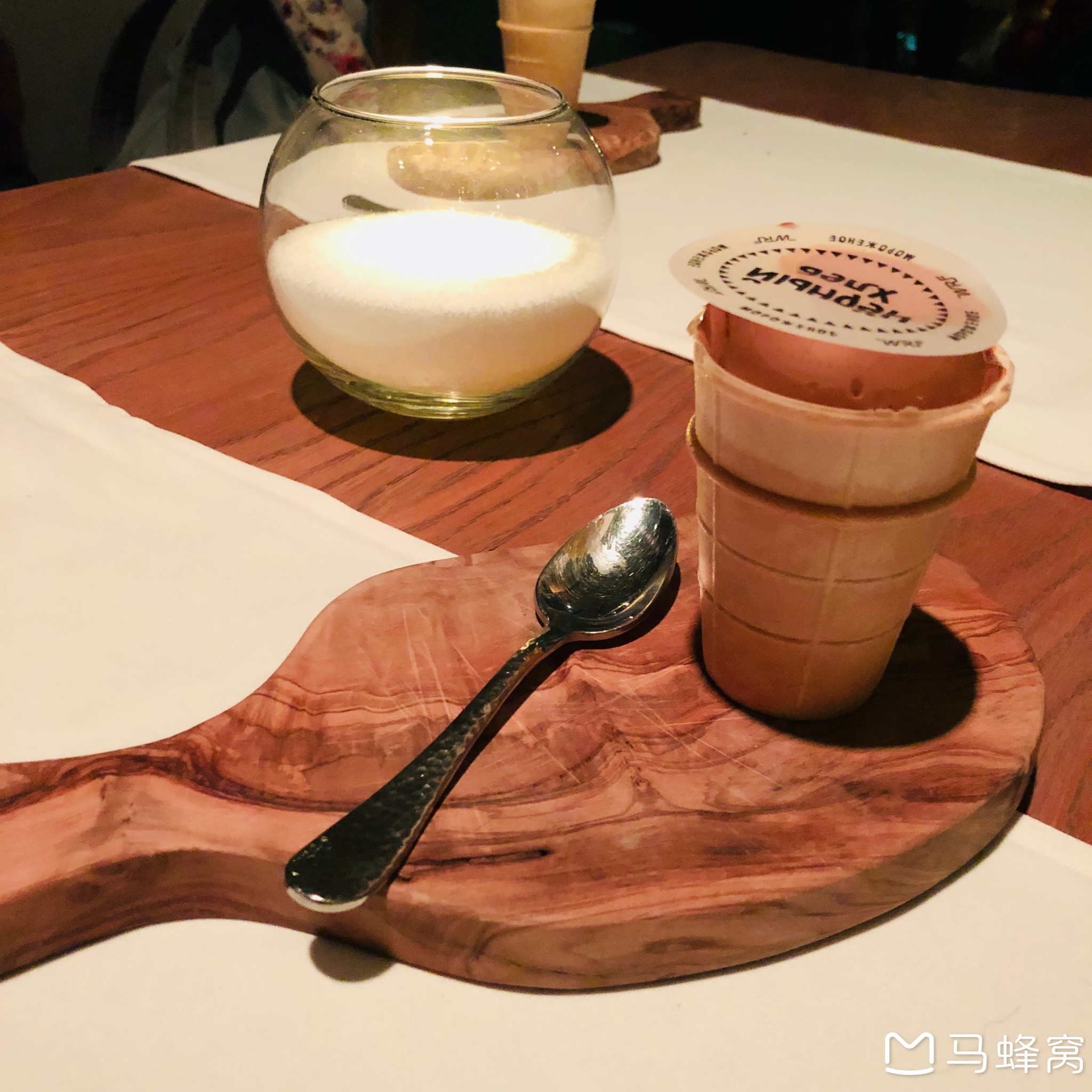 吃完所有肉菜,每道菜吃一口都觉得腻得吃不动了,就像喝些果汁或者清爽的饮料,服务员递上来这个“甜点”,因为是送的,所以也不知道什么名称,是一个个像普通那么大的小球,服务员亲自用勺子喂我们吃了一口,还让我们一定要闭嘴。