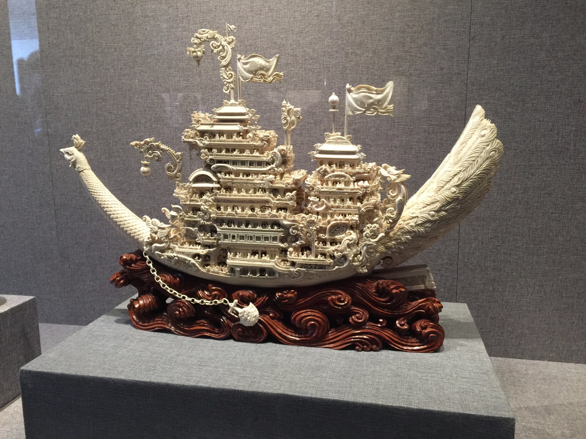 陈家祠其实里面不大,首进大厅算是陈家祠的正门,首进的东西两厅算是旅游纪念品的专卖店,剩下的除了中进大厅聚贤堂和后进大厅祭厅,剩下的中进和后进东西厅,以及东西两侧的前后厢房现在都是作为广东民间工艺博物馆,长期设有广东传统雕刻艺术、广东象牙雕刻艺术、广东刺绣、百年陈氏书院和旧广州家居的主题展览。