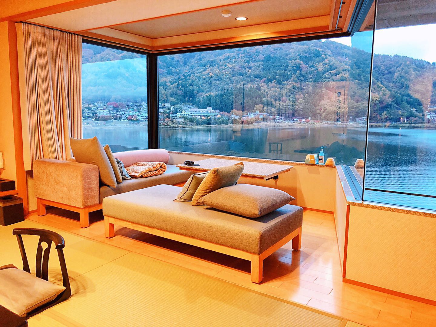 因为我不想错过美好的湖光景色和富士山景色,虽然价钱有些贵6000人民币一晚,但我觉得还是值得的,毕竟在旅游的途中享受最好的时光便是不枉此行了。