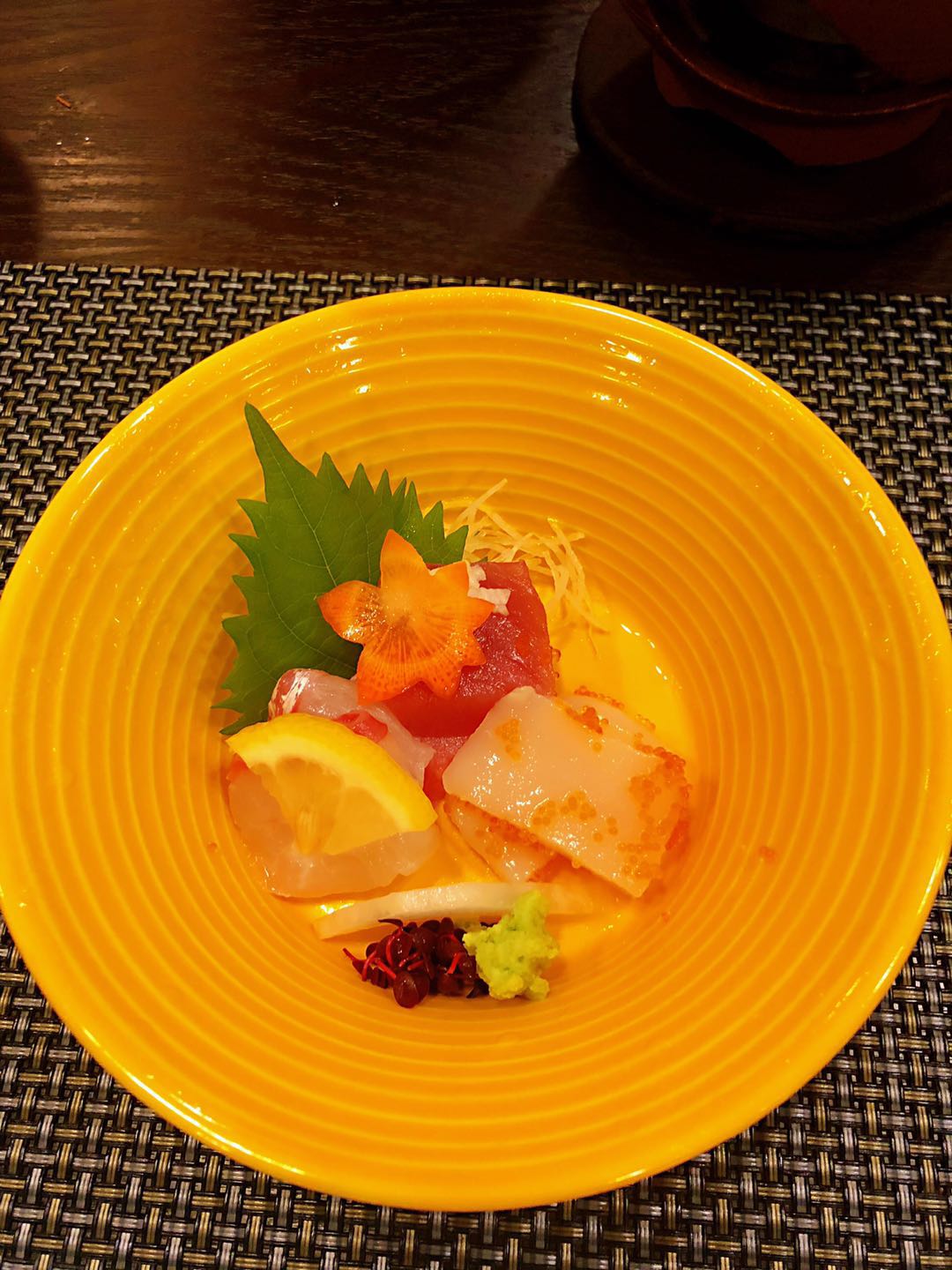 之后便是很有仪式感的日式晚餐的享用,有生吃、烧烤、甜点、酒水等!