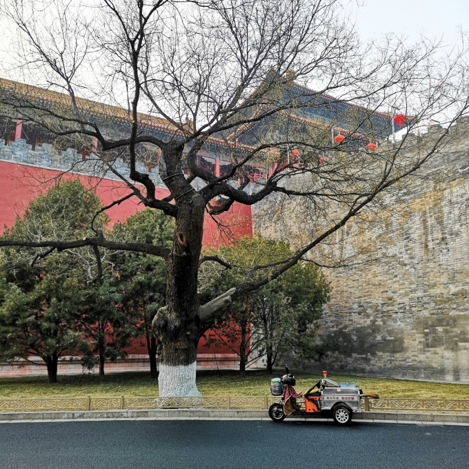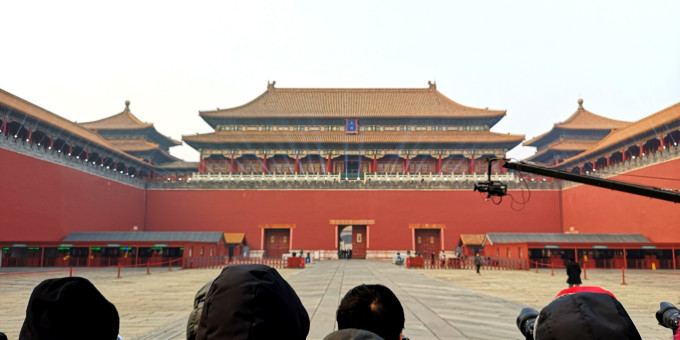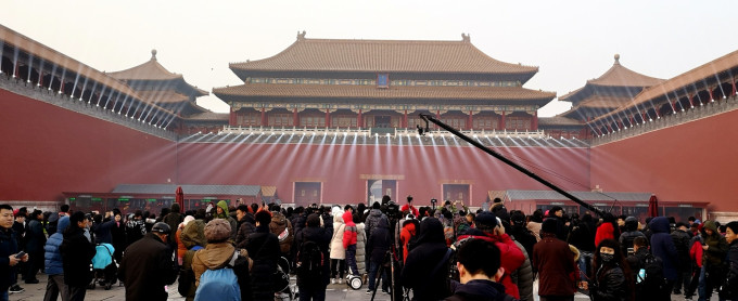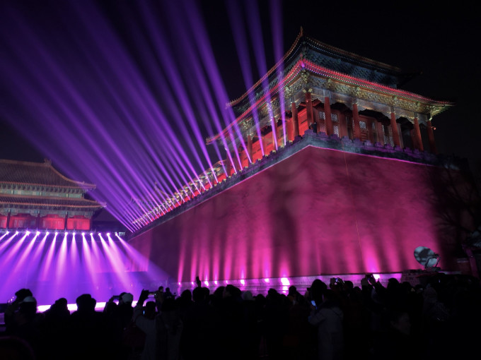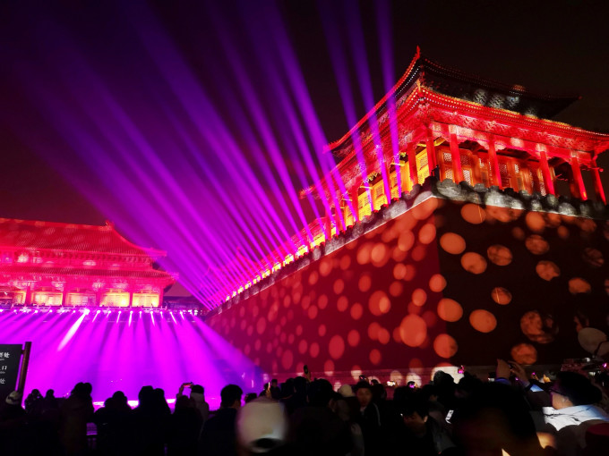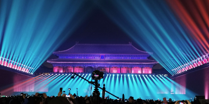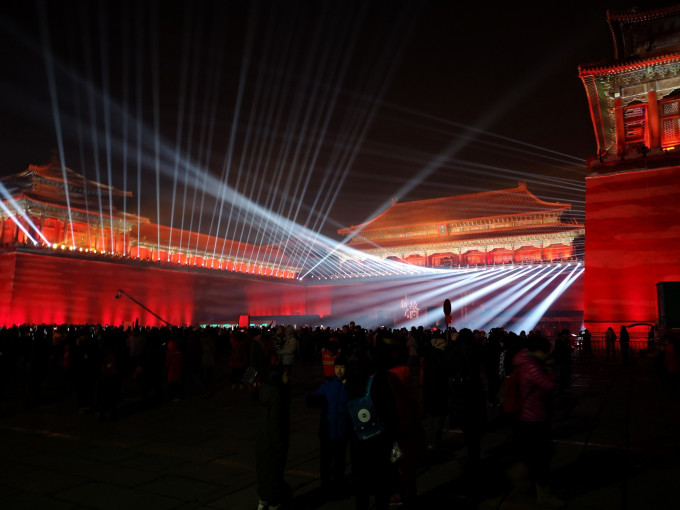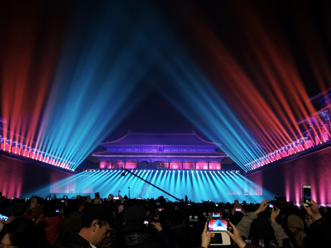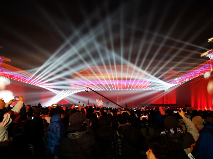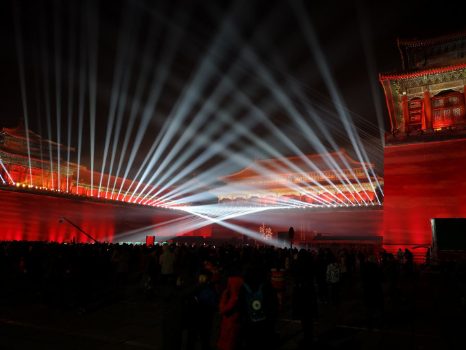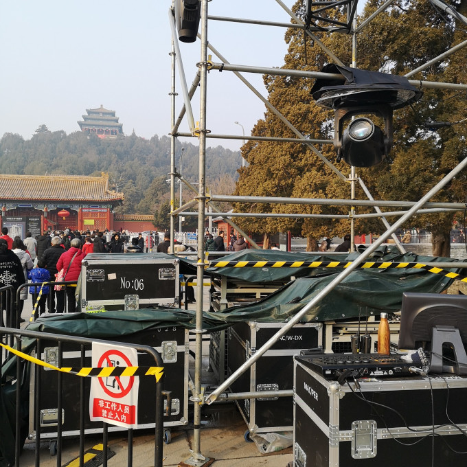 下午三点多的神武门,灯光秀的设备,早已就位。