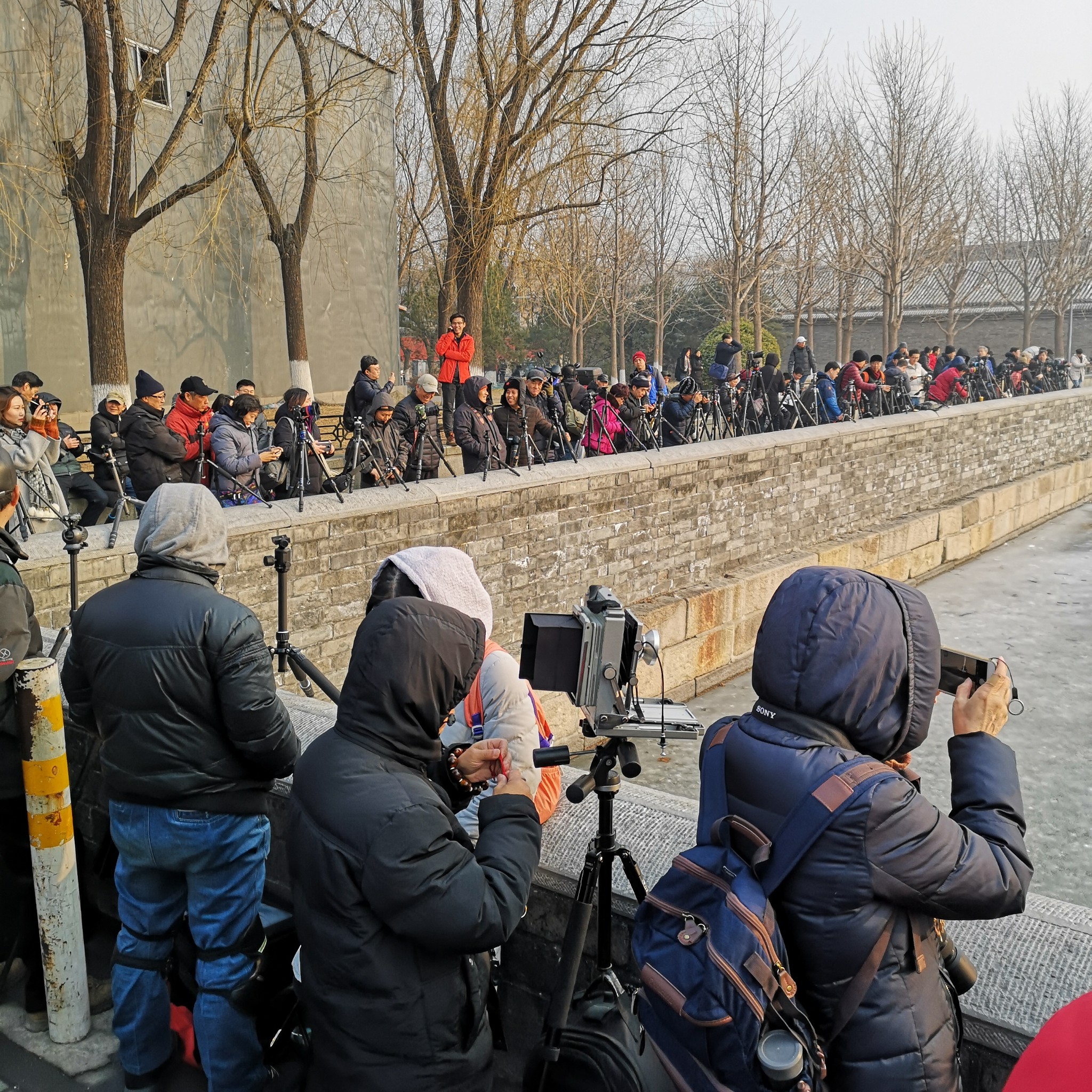 拍角楼的人儿熙熙攘攘,除了拿手机的游人,也有不少拿着“大家伙”的摄影家。