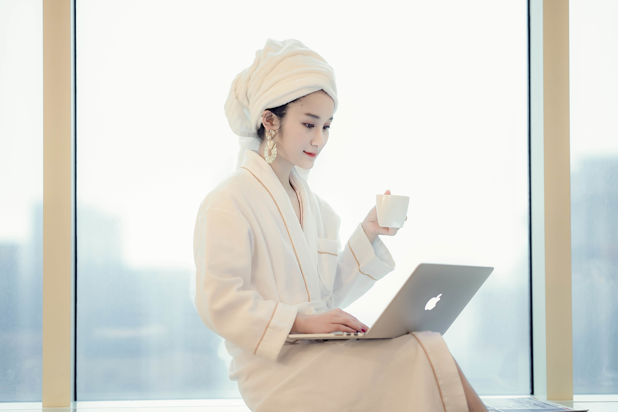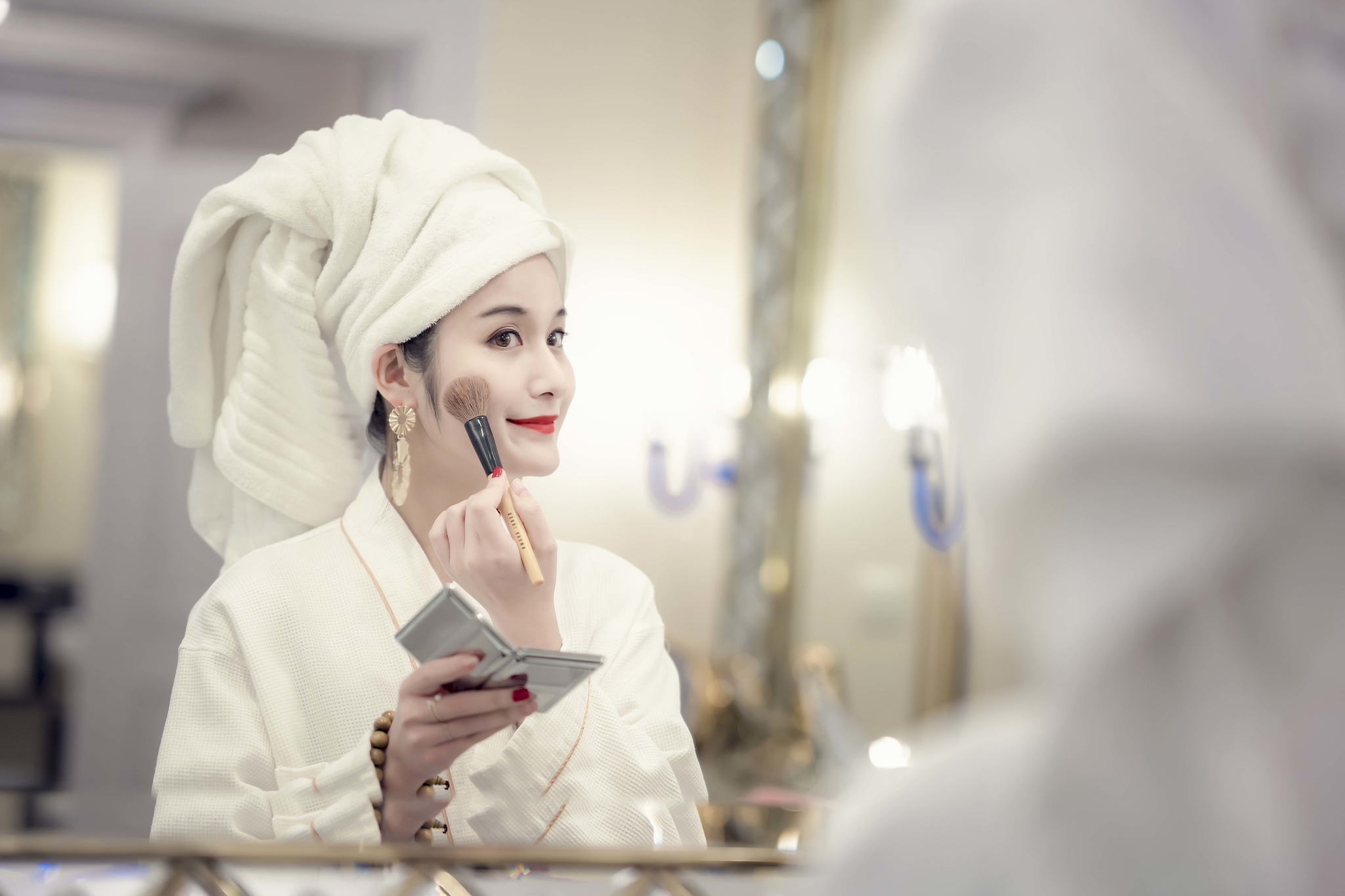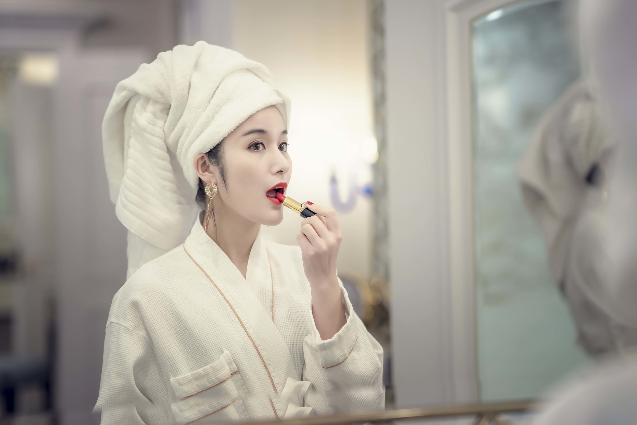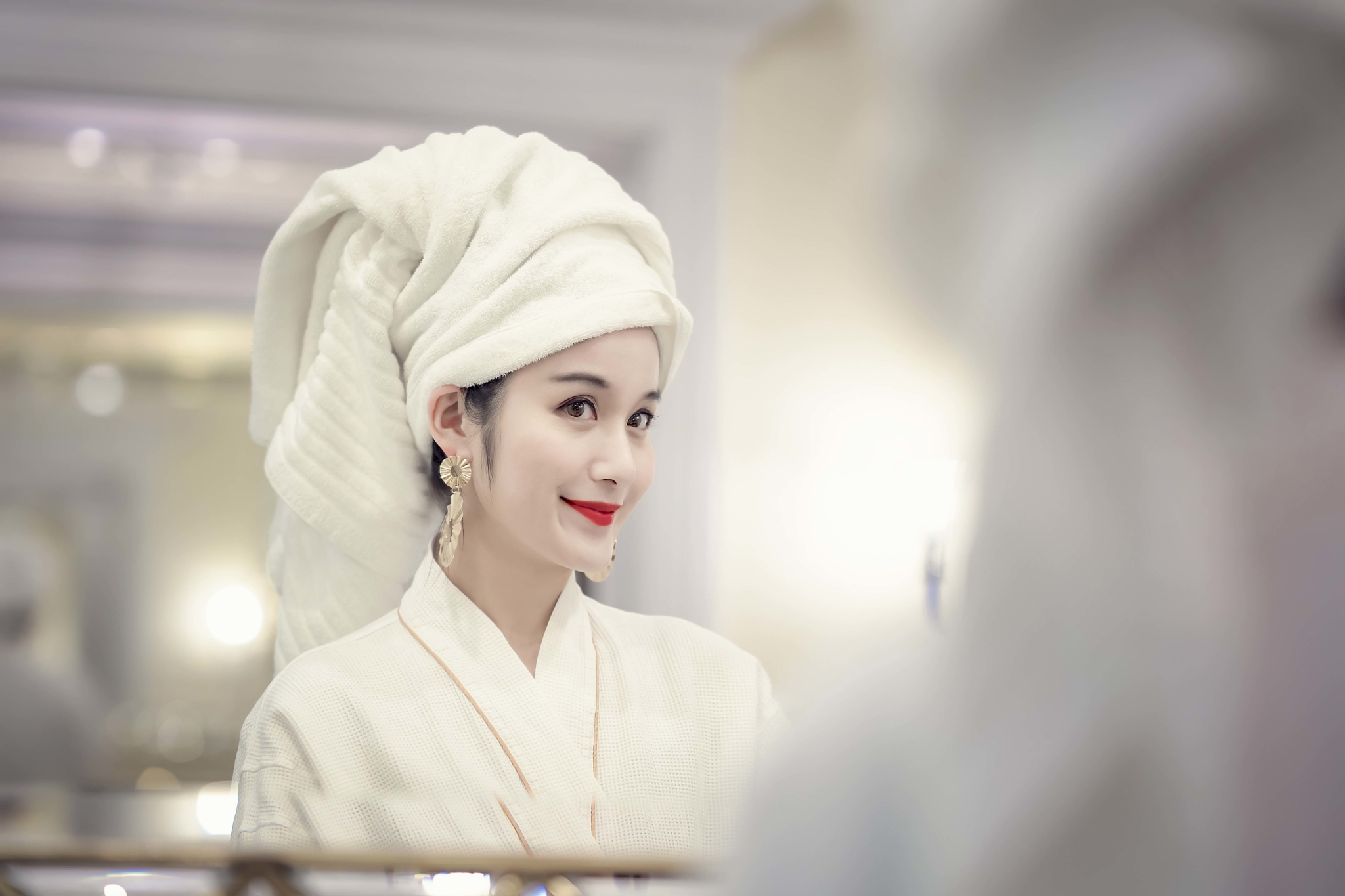 房间早餐,包头巾,大耳环,浴衣四件套是贵妇标配。不得不说,贵妇好难演,三斤重的浴巾压我头上简直路都走不稳了..