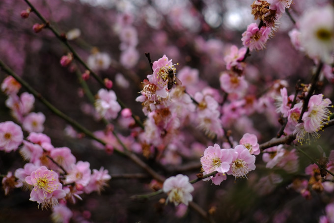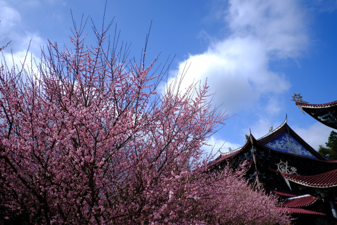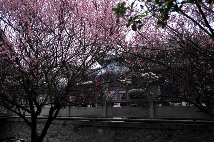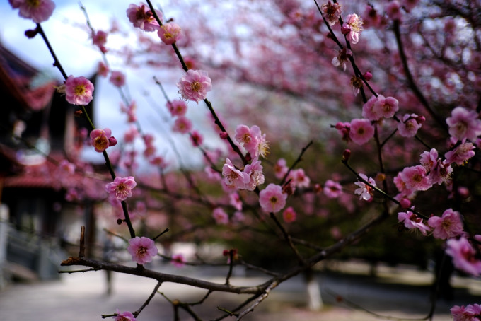 数百棵梅花遍植林阳寺的每个角落,在此闲庭信步,十分悠哉!走累了,就直接在花下的石凳子、石台阶上坐着休息,抬眼望,便是层层叠叠的梅花和禅院构成的一幅美景,闭眼闻,是一道道沁人心脾的暗香,你说这心情岂能不舒畅呢?