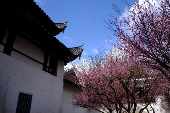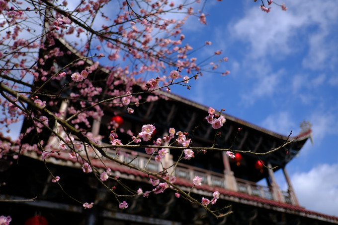 到公园和去古寺,赏梅的心境自然是不同的,几年前看了关于福州林阳寺的梅花的报道,就心心念念地想去看看。一来我非福州本地,二来赏梅自然要看季节,所以直到春节前夕,大学同学商议在福州搞了个聚会,如此一来,天时地利皆有了,我也趁此机会来一趟林阳寺。
