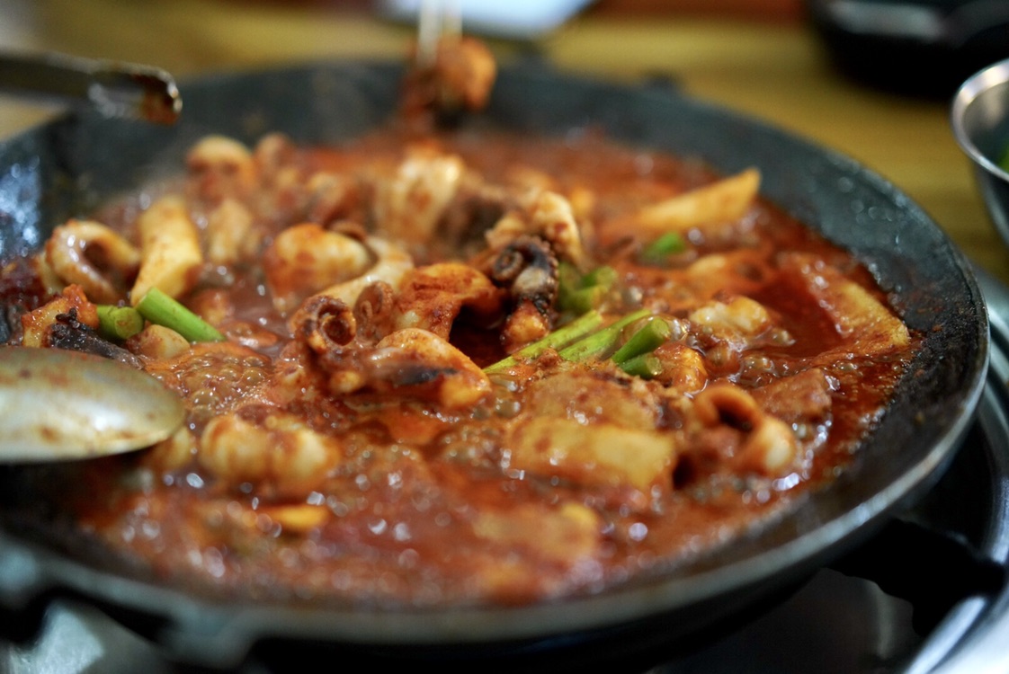 据说是本地人超爱的铁板小鱿鱼,成为了我们到首尔的第一顿正餐,辗转机场酒店到店时已经下午三点多,到店门口还小等了一会儿位置。