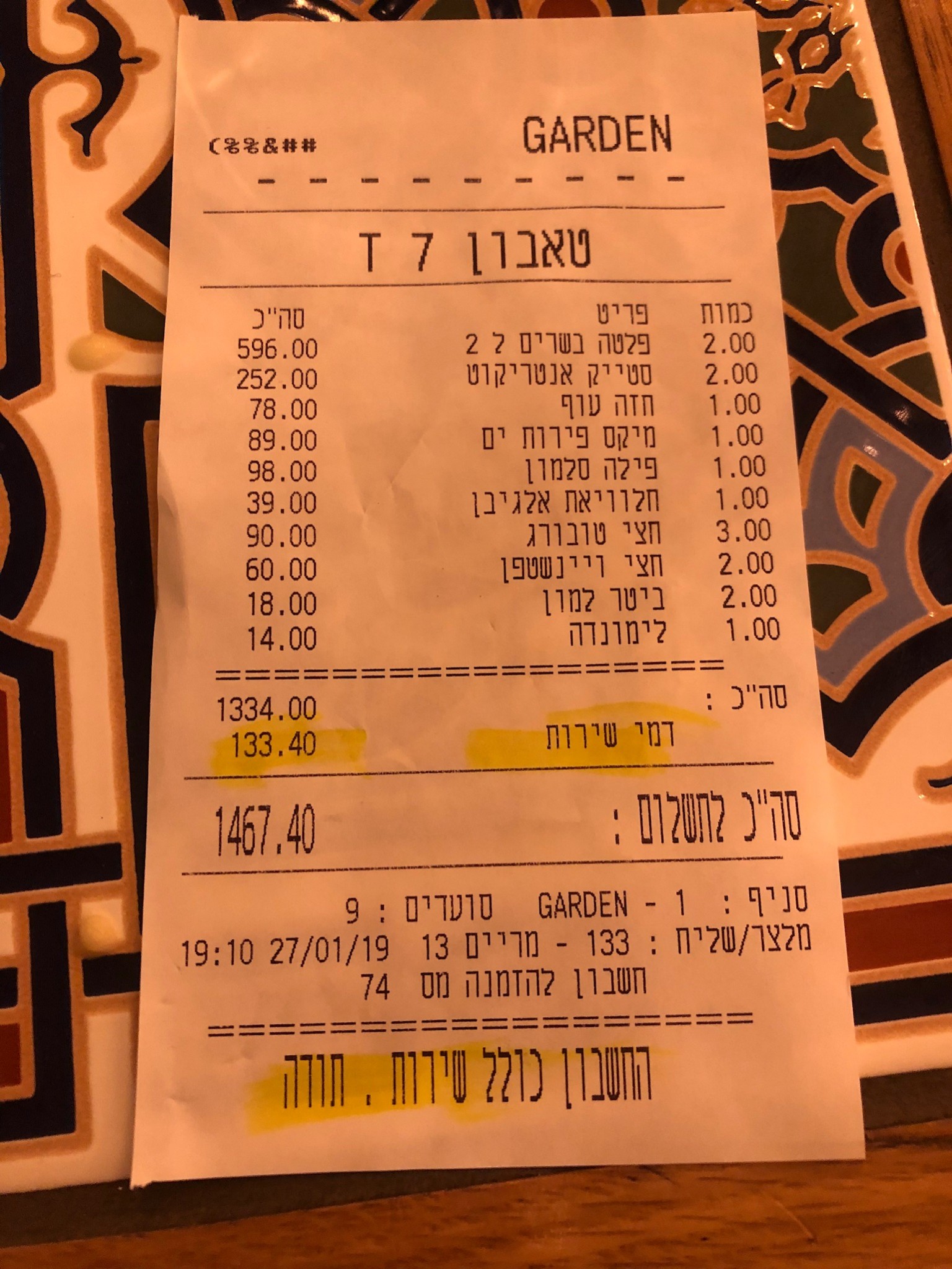 以色列物价挺高的,差不多是上海的3倍吧。约旦物价也不算便宜,一份汉堡王的套餐,差不多人民币50元。以色列餐厅会收10%-15%的服务费,相当于小费,具体给多少你自己决定。