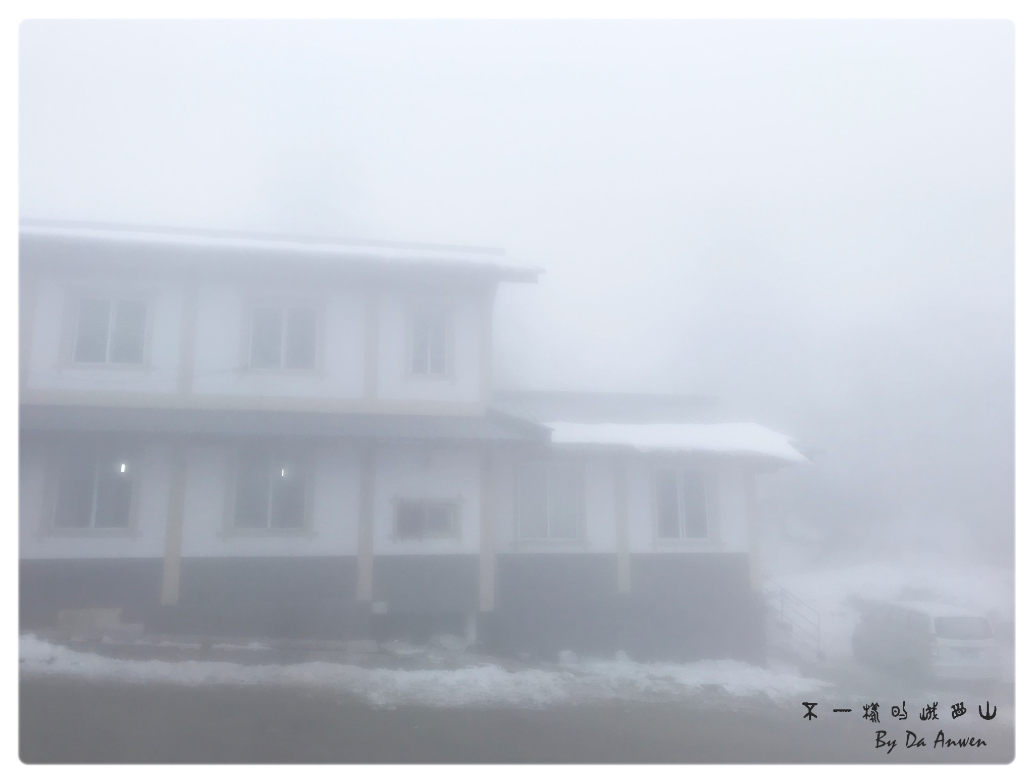 白茫茫的一片,停车场的车,近处的建筑物都只是依稀可见了。