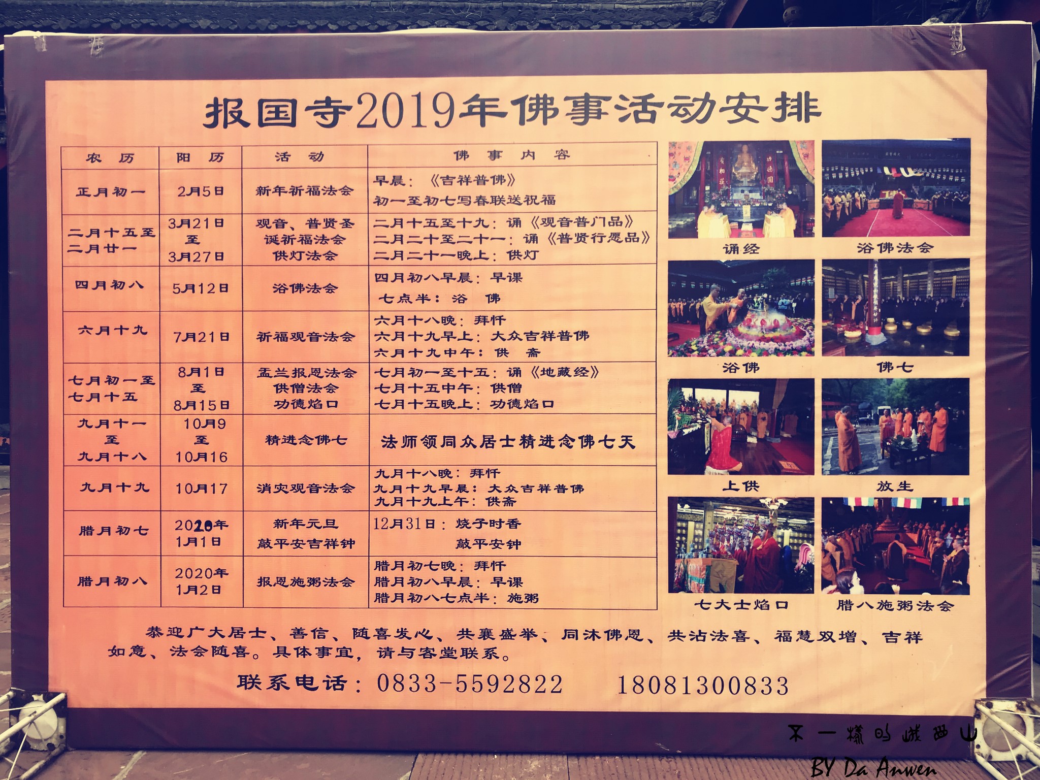 一进去寺庙,就可见一个大展示牌,2019的佛事活动。