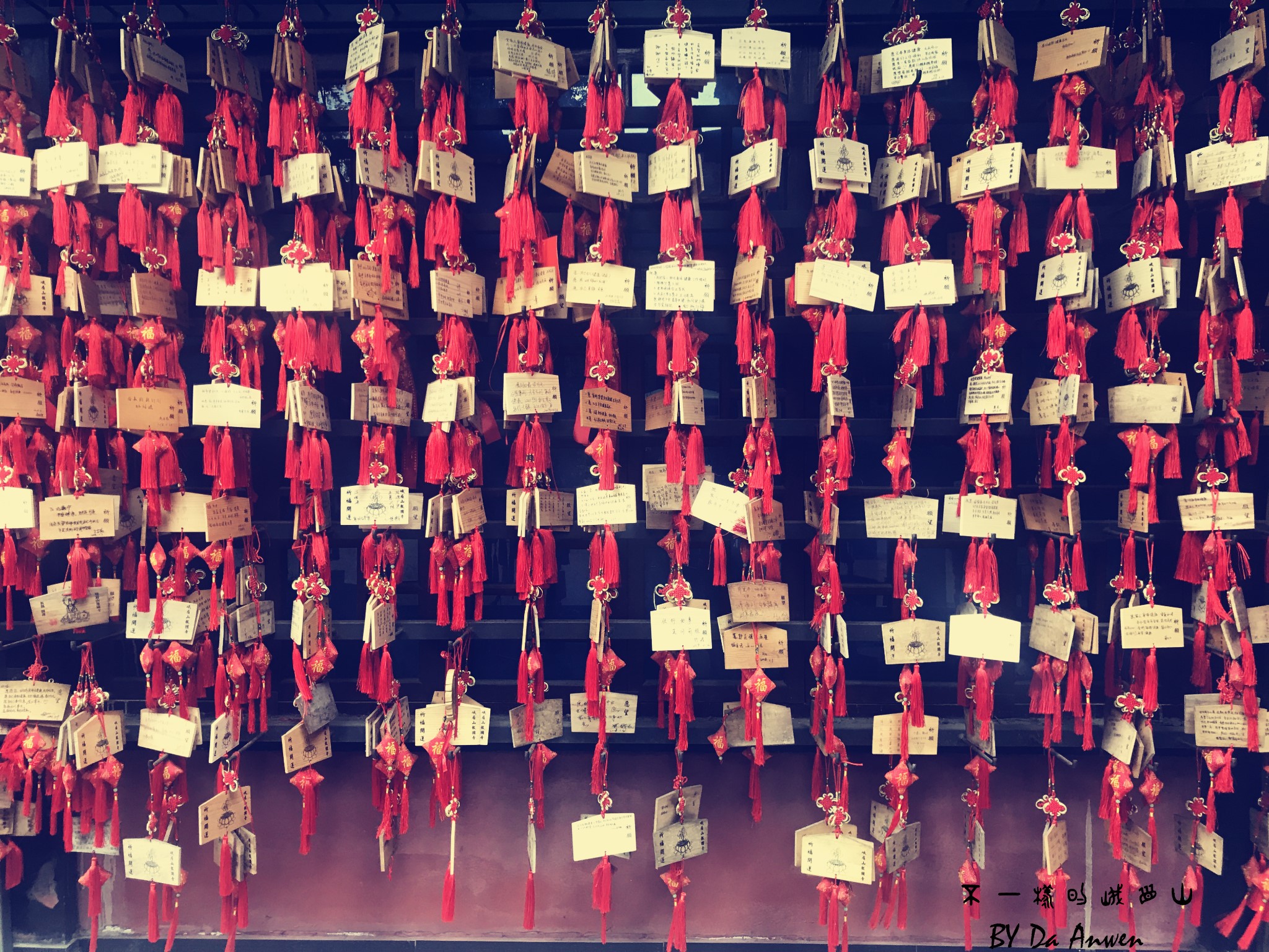 门口处的许愿牌,每一个牌子上都有着大家美好的祝福和愿望。