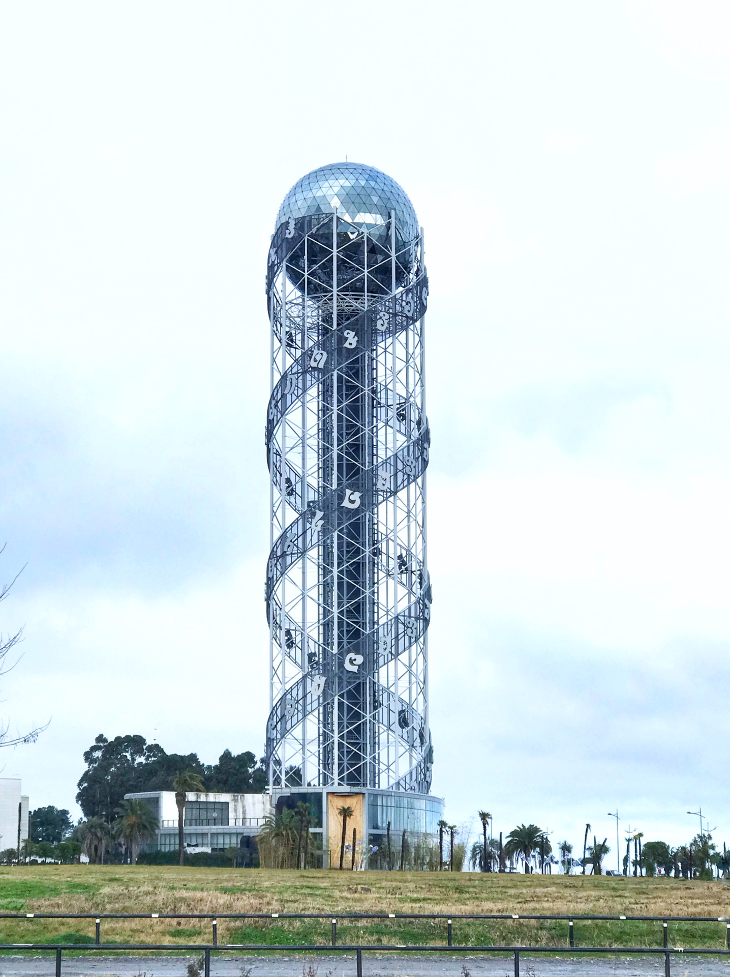 此塔叫Alphabetic Tower,是一座130米高的建筑,塔楼象征着格鲁吉亚字母和人民的独特性。该结构以其熟悉的双螺旋模式结合了DNA的设计。塔上有两个螺旋带,上面有33个格鲁吉亚字母,每个字母高4米,由铝制成。