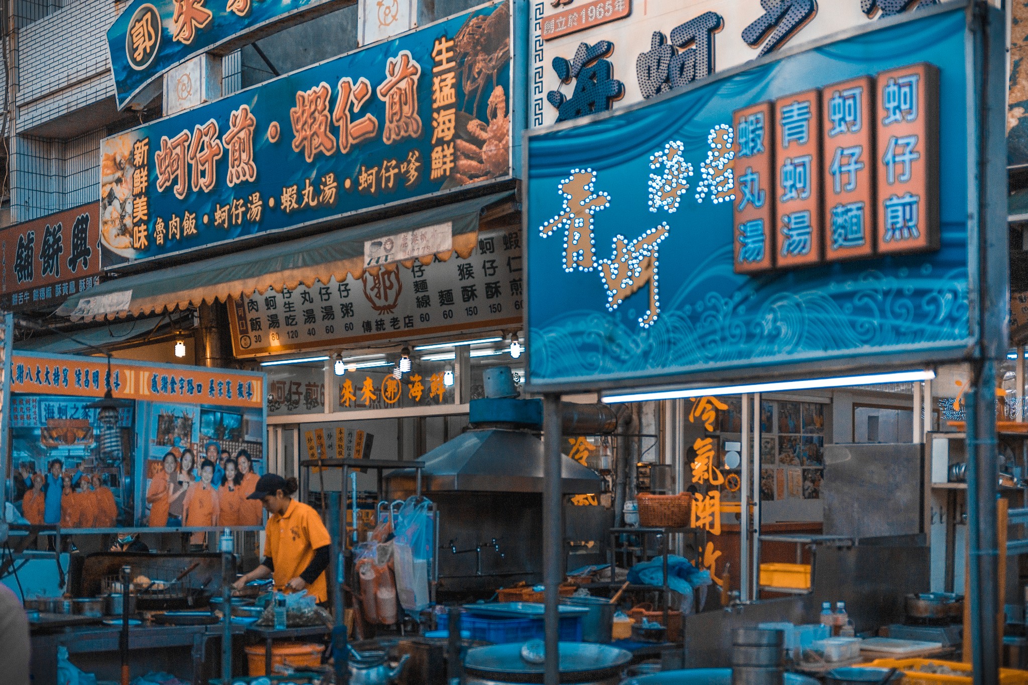 点了蚵仔煎,鱼丸和炸虾,坐下来静静品尝,仿佛穿越时空回到了那个没有霓虹灯的时代……
