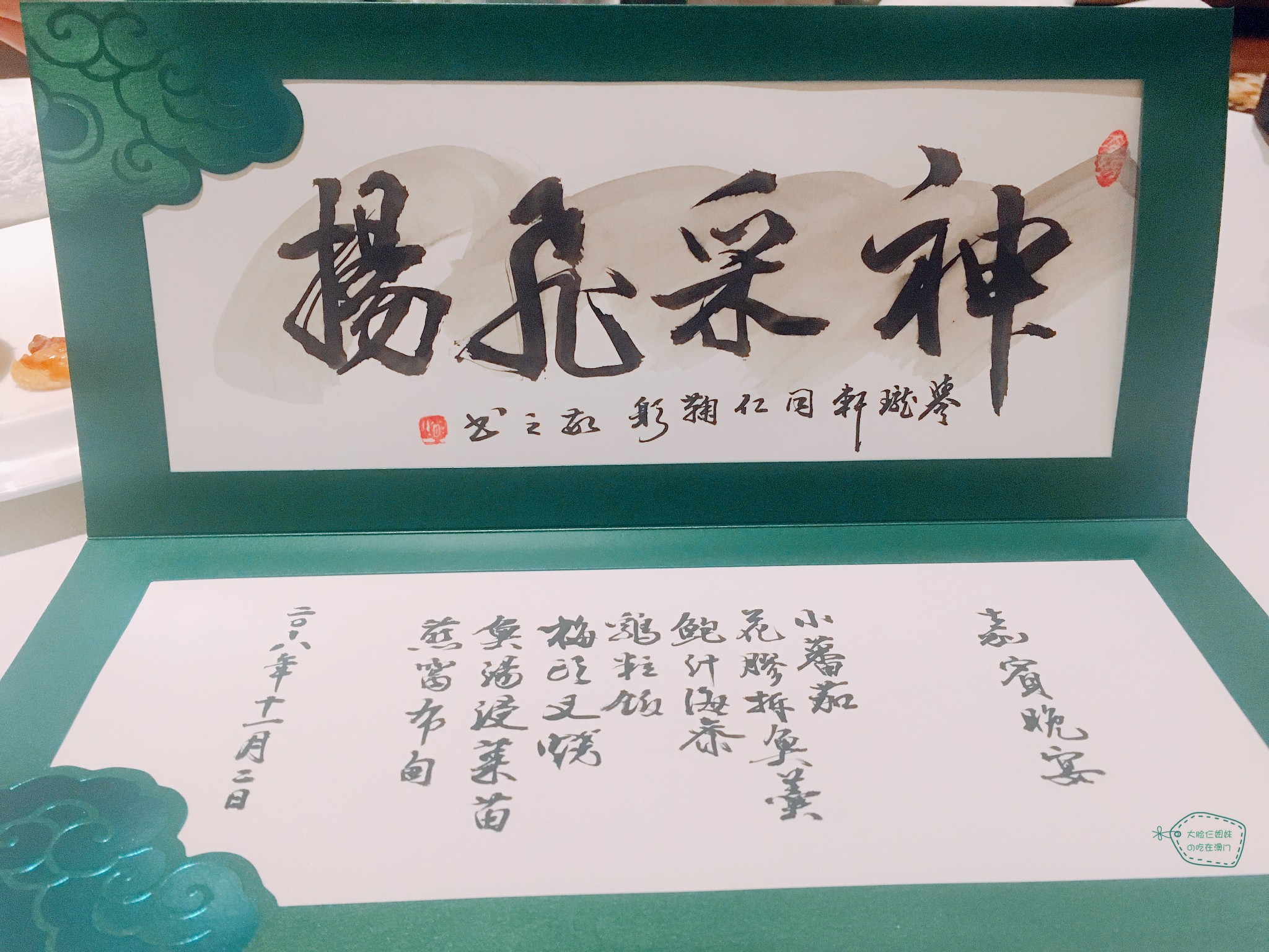 最后餐厅还赠送了书法家书写的菜单,很特别也很有纪念意义。