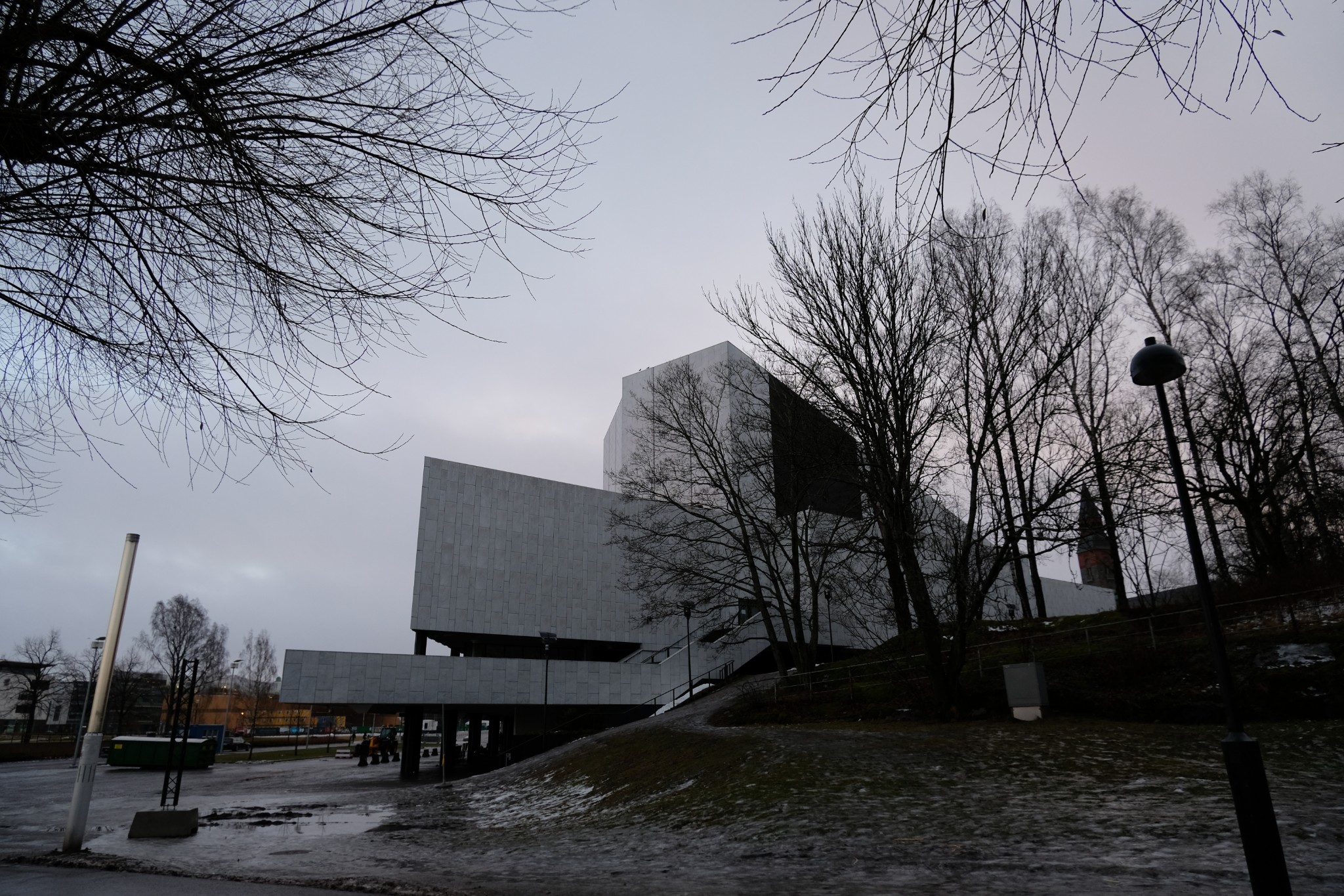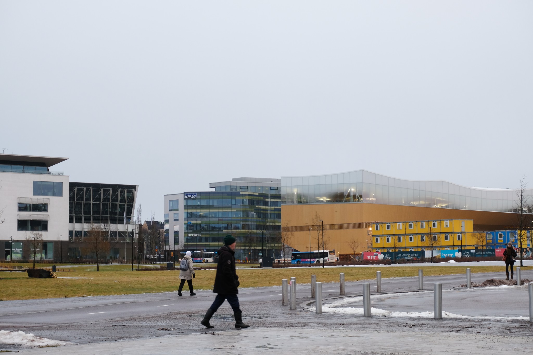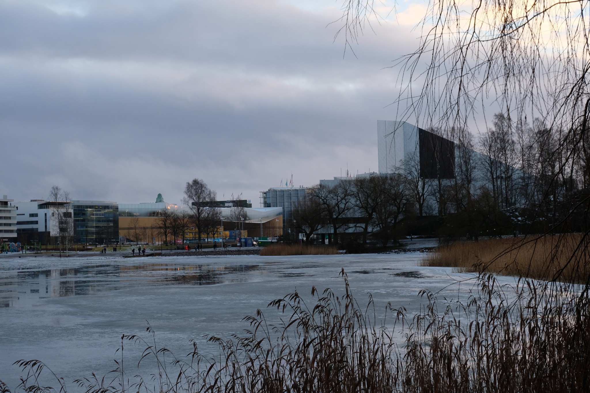 这天是阴天,景色一般,拍出照片也灰蒙蒙的。一路走过议会大厦、赫尔辛基音乐厅、Oodi图书馆、地亚大厦、国家博物馆,穿过湖面结冰的Hesperia 公园和芬兰歌剧院。当天是新年假期基本没有开门的公共场所。