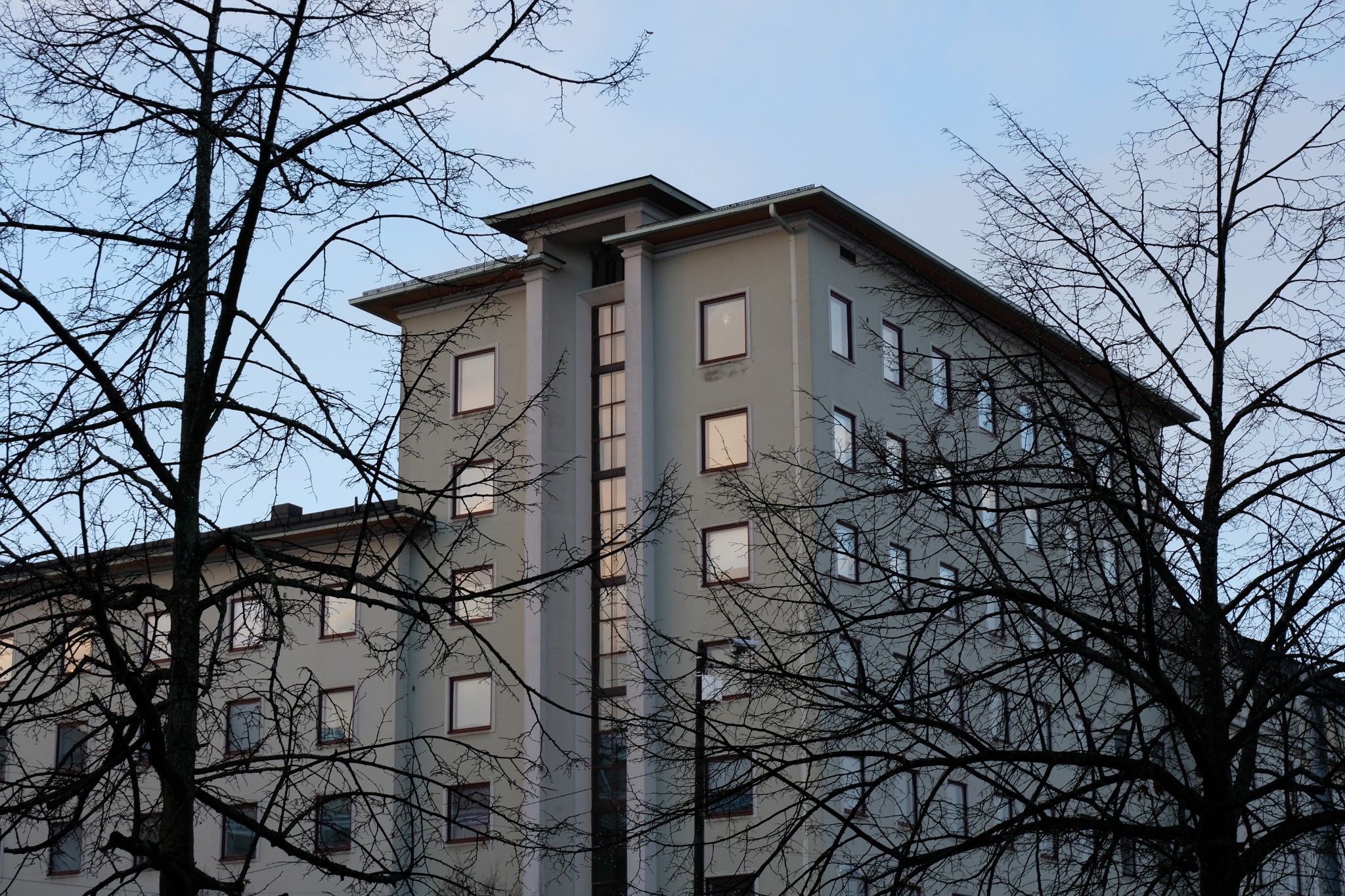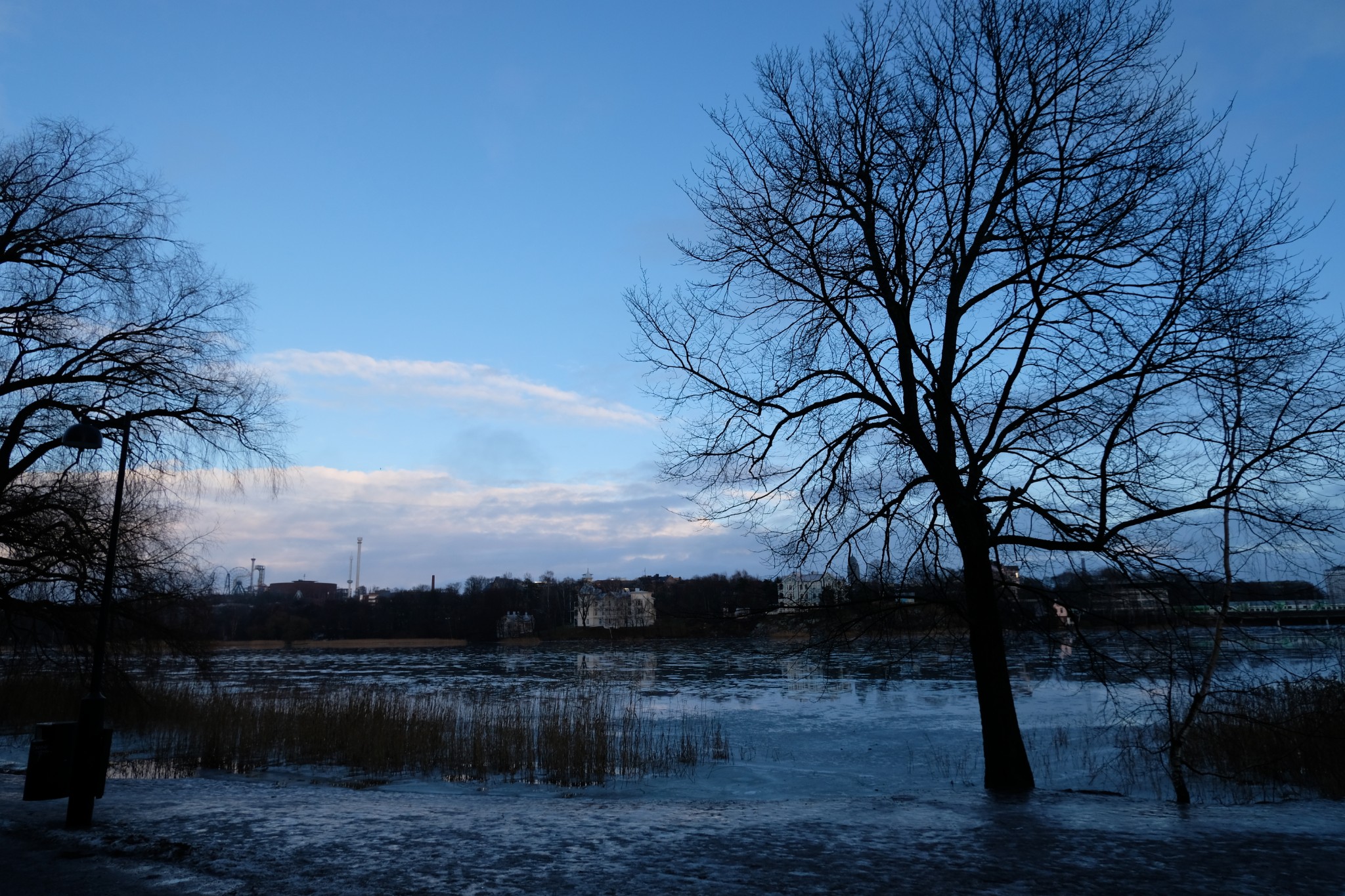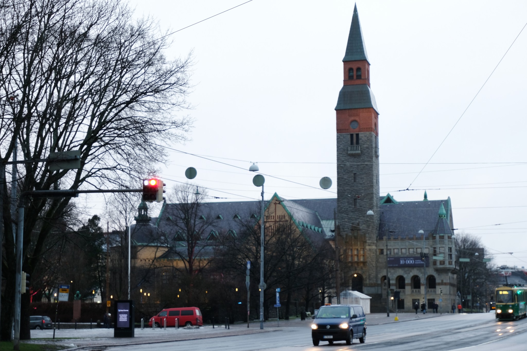 这天是阴天,景色一般,拍出照片也灰蒙蒙的。一路走过议会大厦、赫尔辛基音乐厅、Oodi图书馆、地亚大厦、国家博物馆,穿过湖面结冰的Hesperia 公园和芬兰歌剧院。当天是新年假期基本没有开门的公共场所。