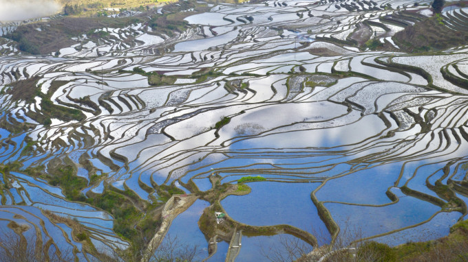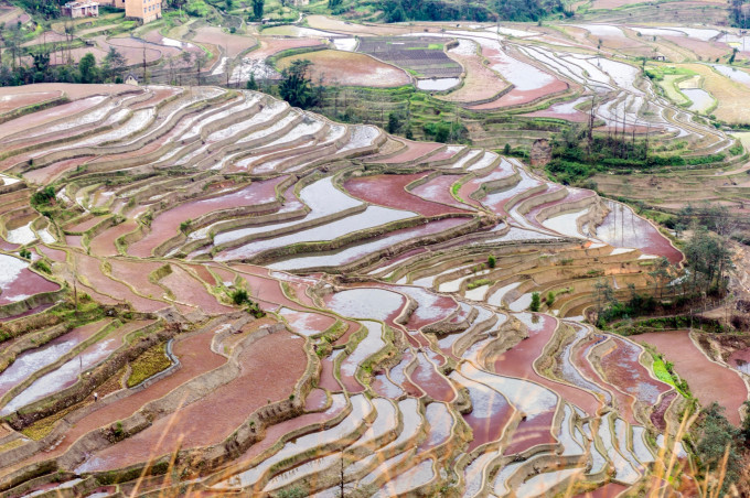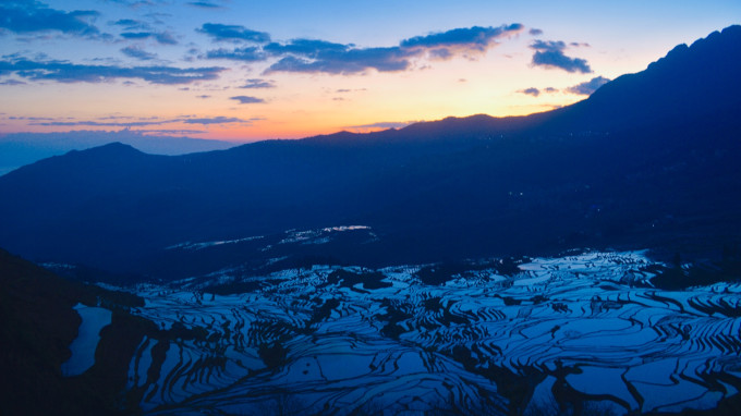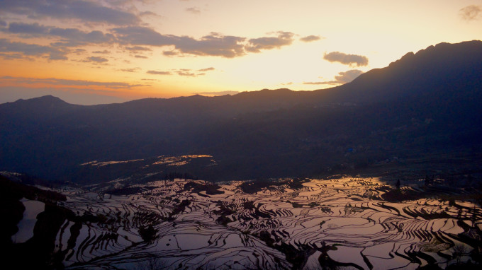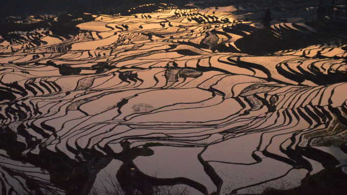 不同时间,不同的光线,梯田的颜色也是不一样的。