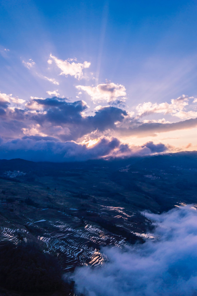 虽然没有看到七彩梯田,但安静的看着日出,呼吸冰凉的空气,放空自己,体验大自然,感受渐变色的天空和梯田,内心得到疗愈。