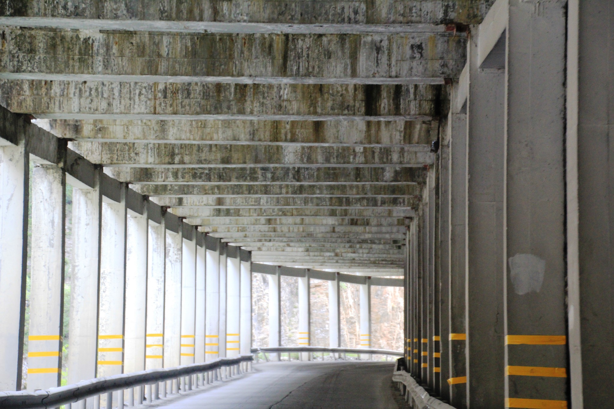 离开然乌镇继续沿318国道北向行驶很快进入安久拉山西坡山谷。狭窄的公路一边是令人不寒而栗的深谷,一边是松动的,随时都有可能有石块坠下的峭壁。如今在公路上方修了一条水泥棚顶,在面临深谷的一侧修了一道围墙,相当于给经过此地的车辆套上了安全帽。车行长廊中,光线从棚顶和围墙的缝隙间透过来,让人产生了一种不真实的,仿佛在玩极品飞车游戏的错觉。