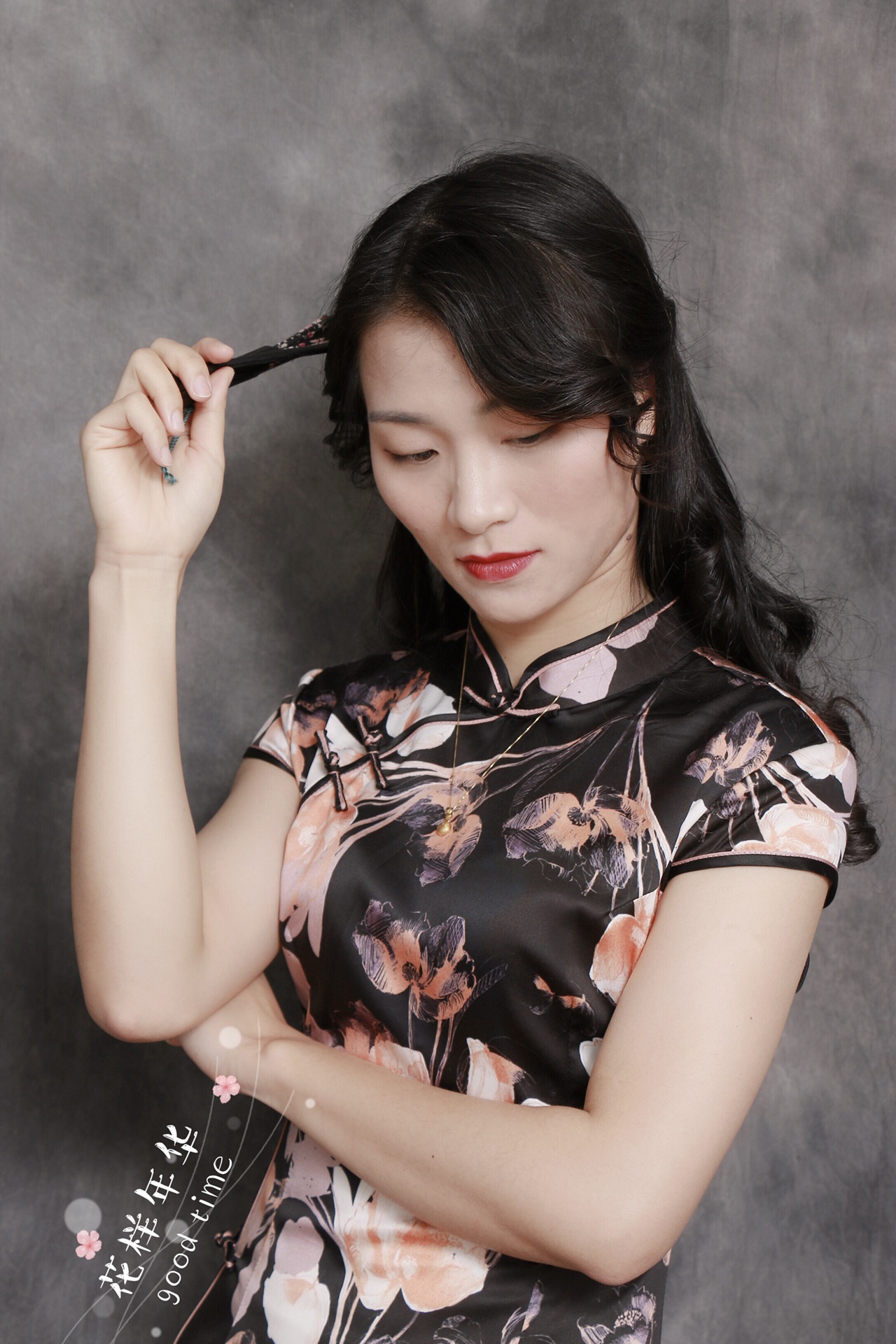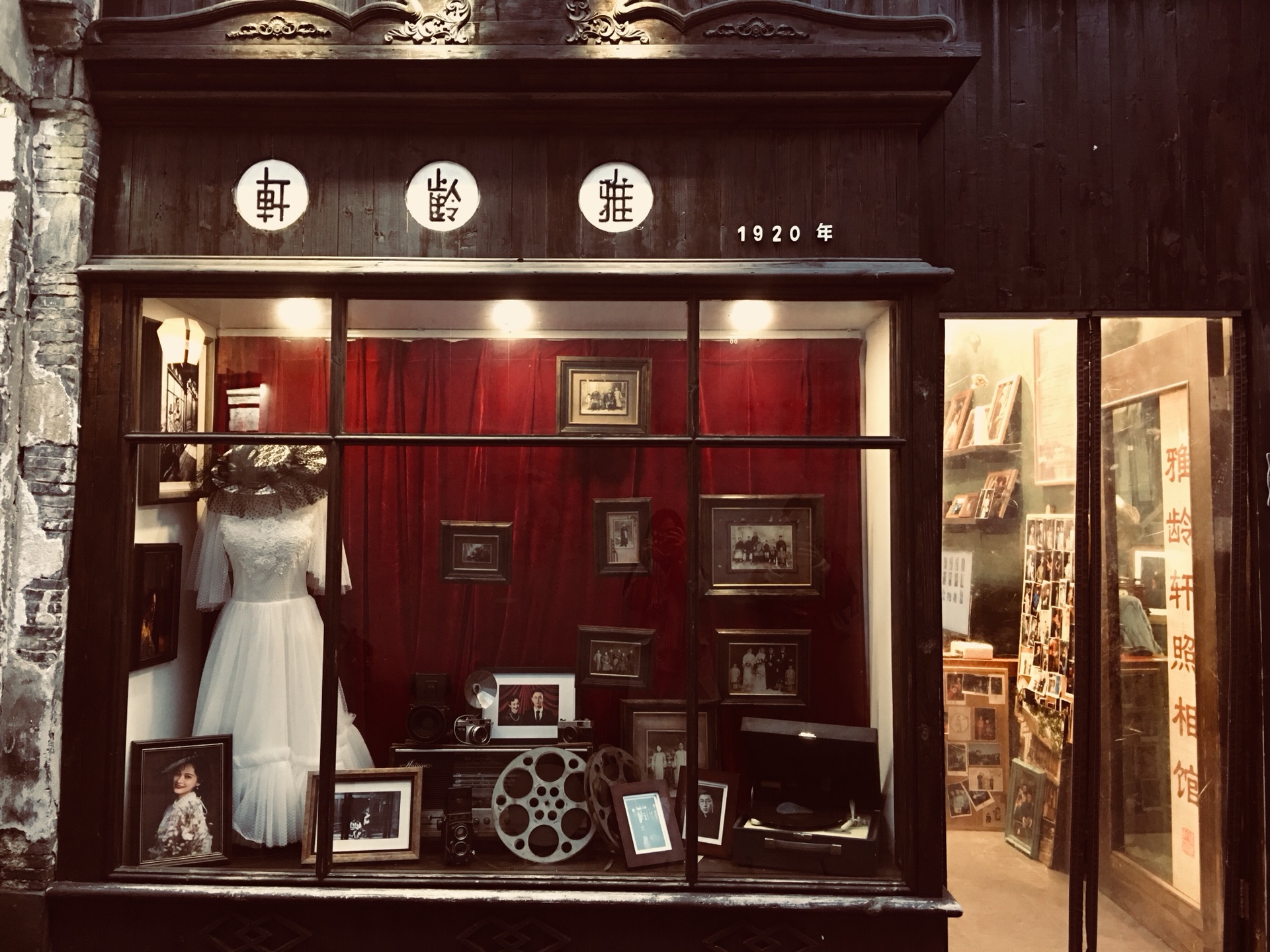接近入夜时分,路过了这家复古照相馆,被展窗的旗袍照吸引,走了进去,发现有人正在做波浪卷刘海,正是我喜欢的感觉。