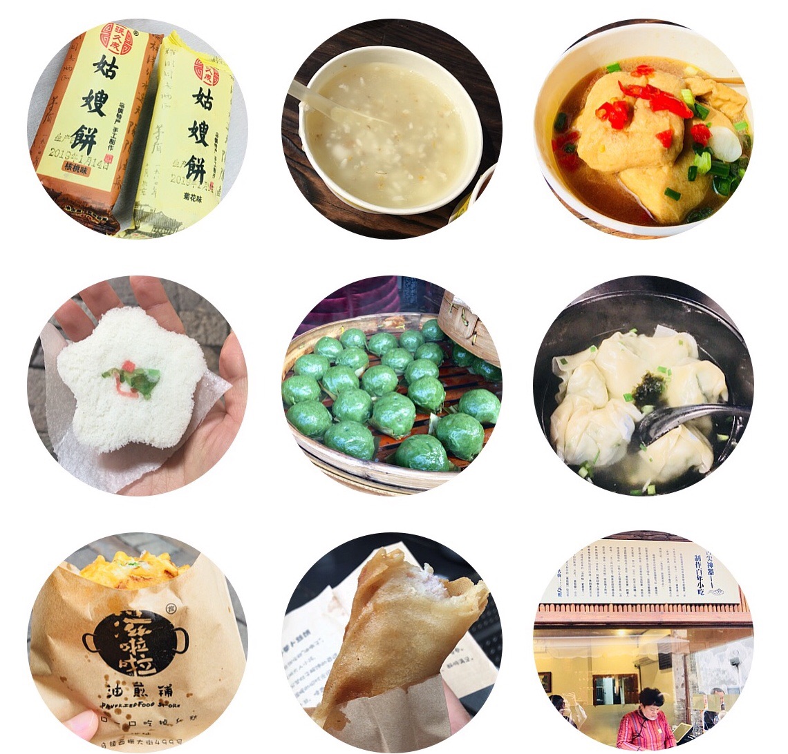 喜欢甜甜糯糯的定胜糕,喜欢热乎乎的桂花酒糟圆子,喜欢十分咸香有味的竹笋咸肉春卷~走到哪里就吃到哪,用各式各样的小吃喂饱了自己!