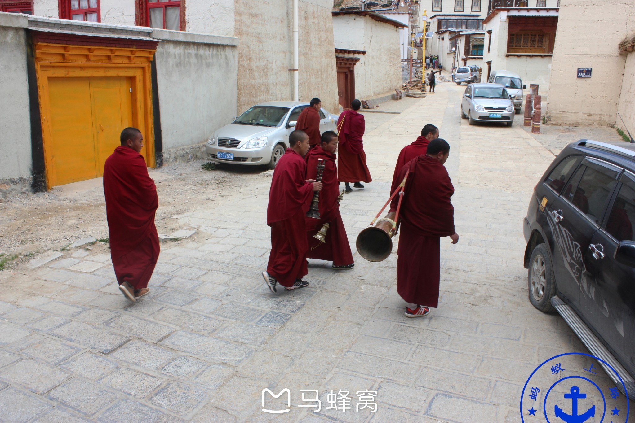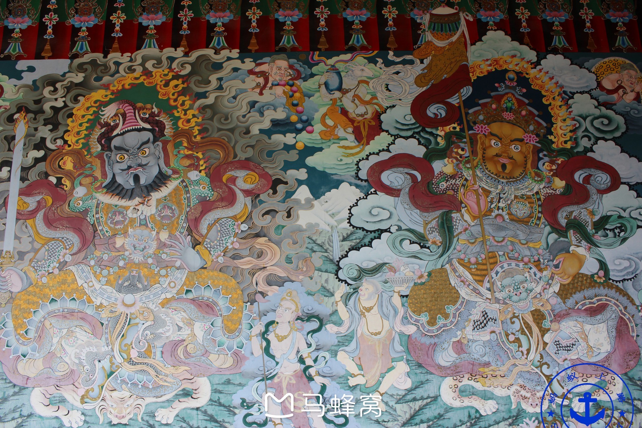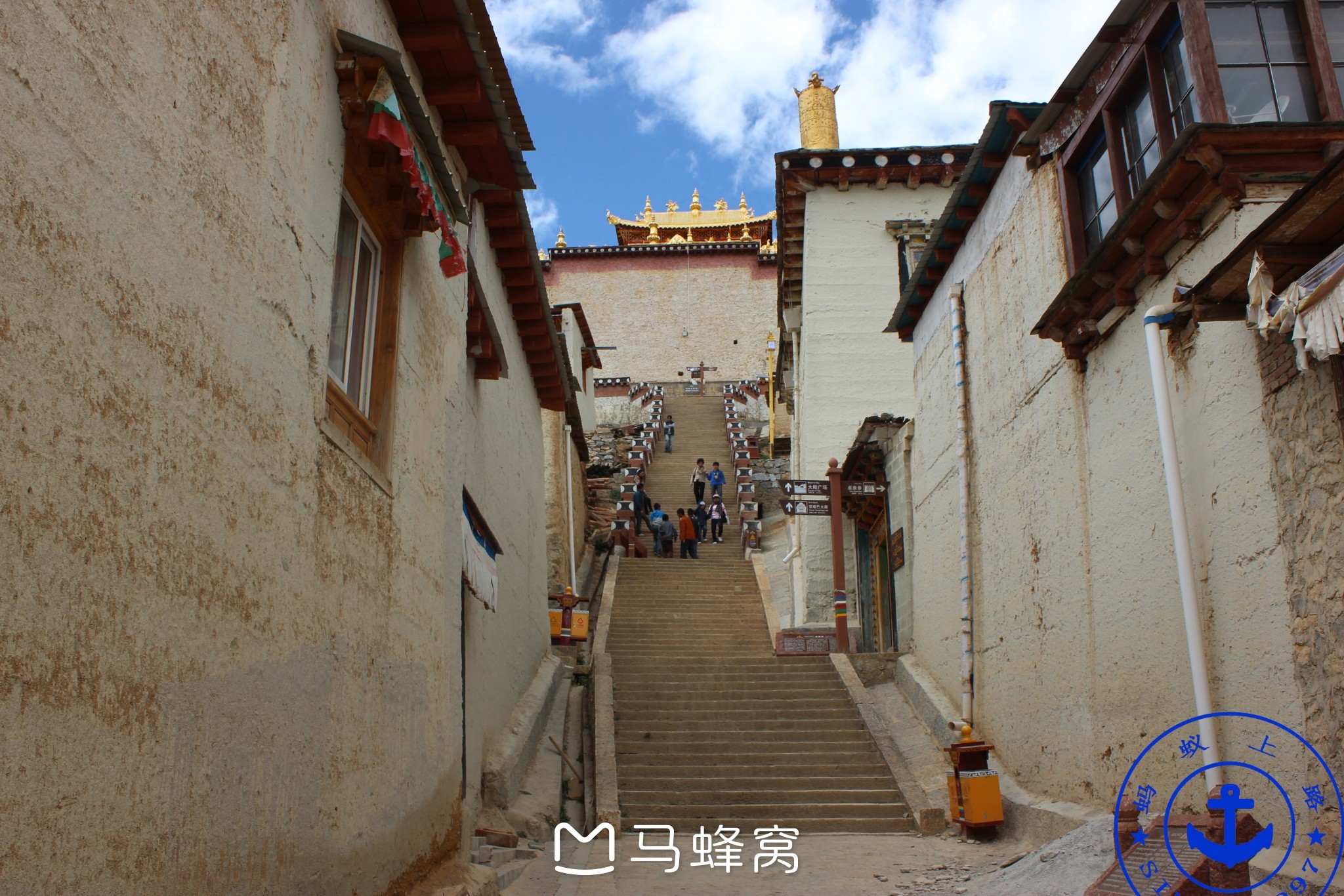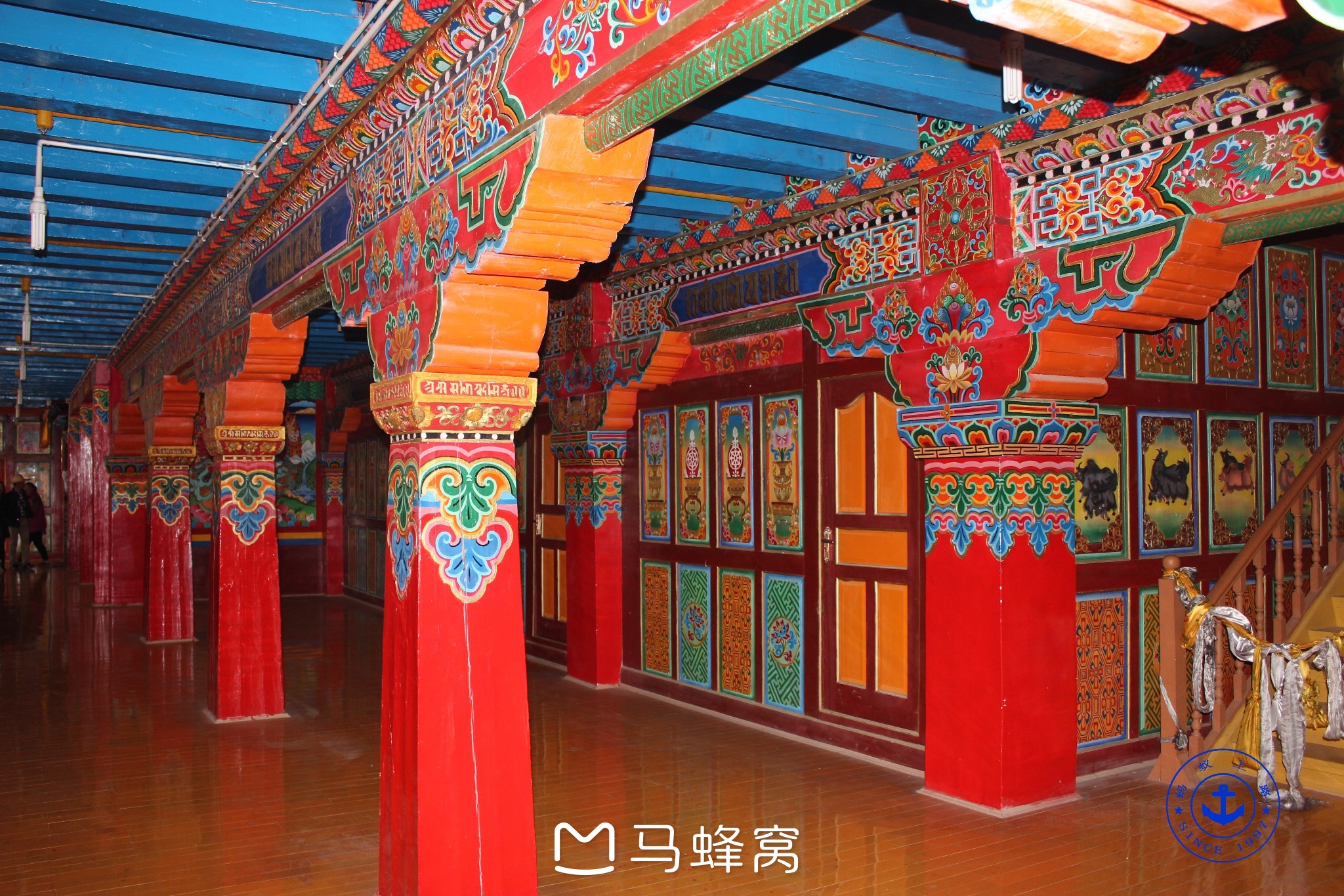 穿过绘有佛家四大天王的大门,进入寺内,沿着中轴线上的台阶,慢慢攀爬。左右两侧分列着众多僧舍和八大康参中的“吉迪康参”,“洋塘康参”,“卓康参”。