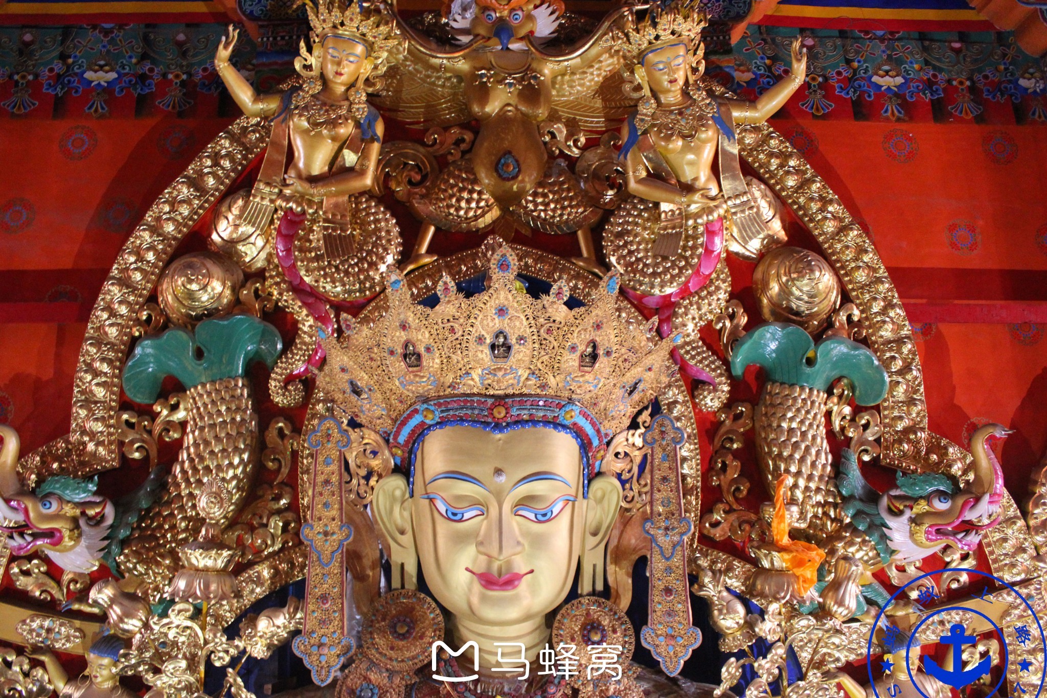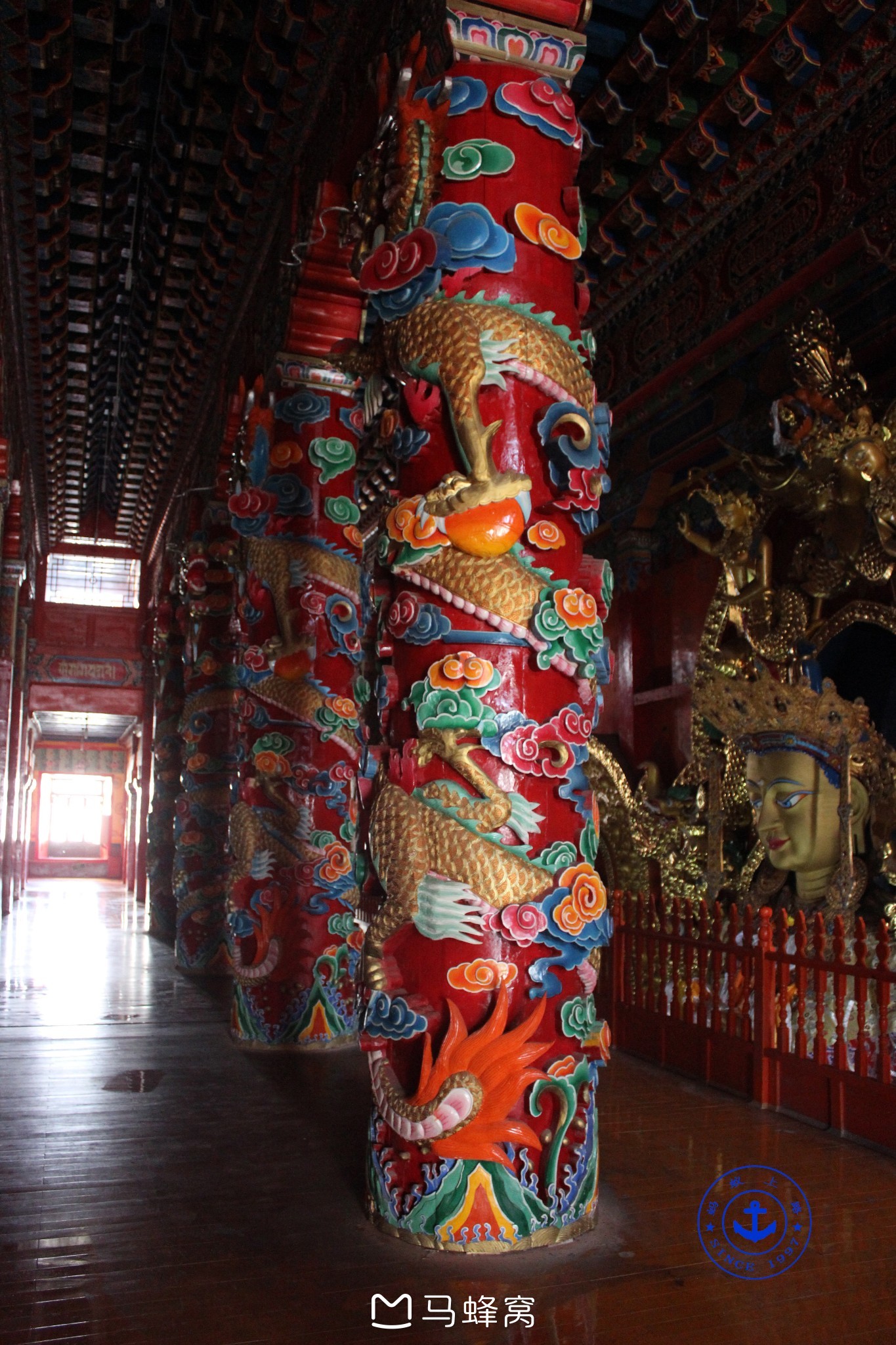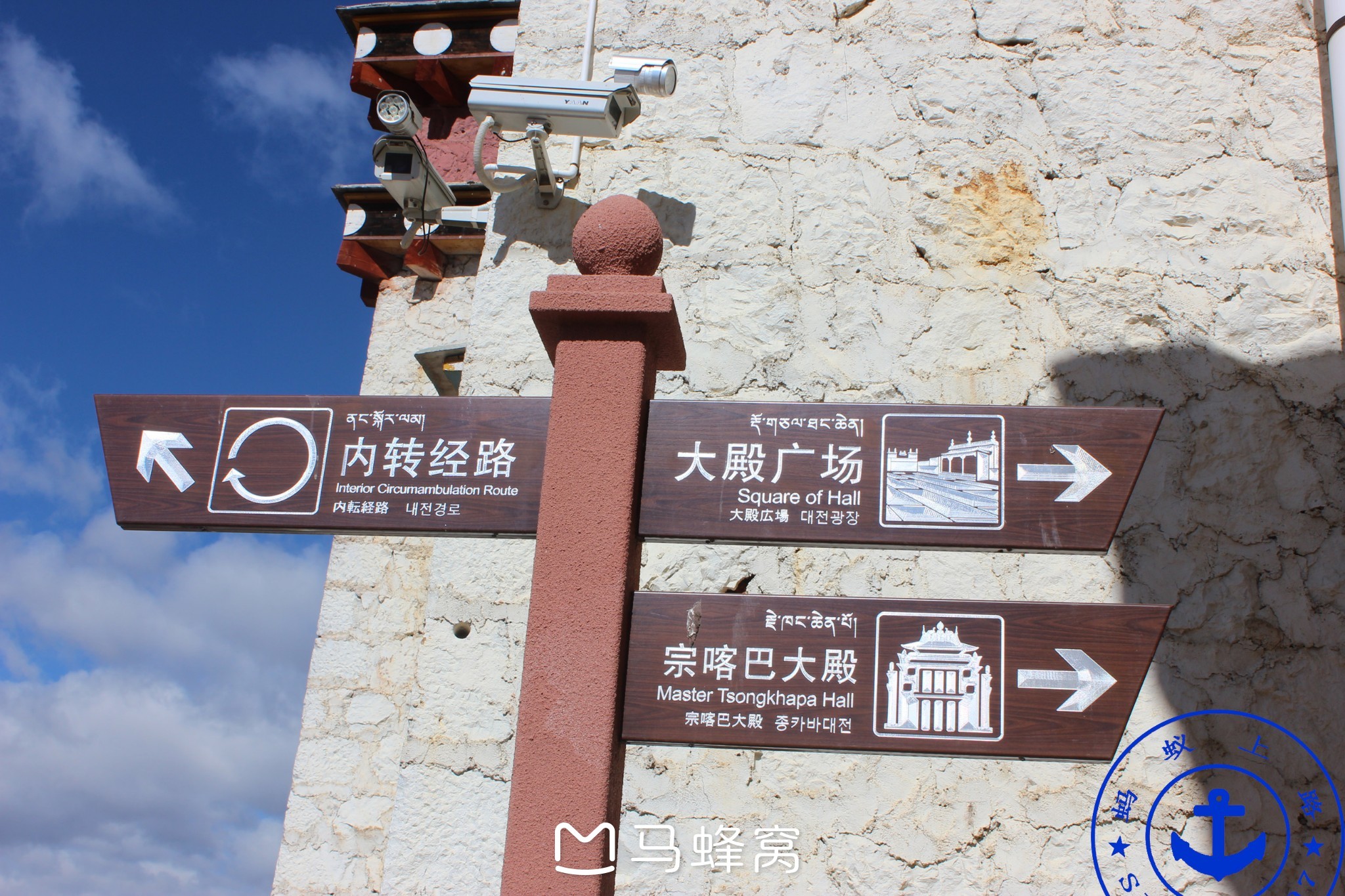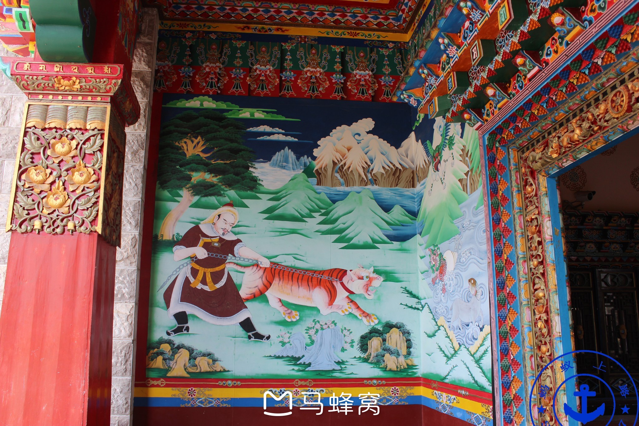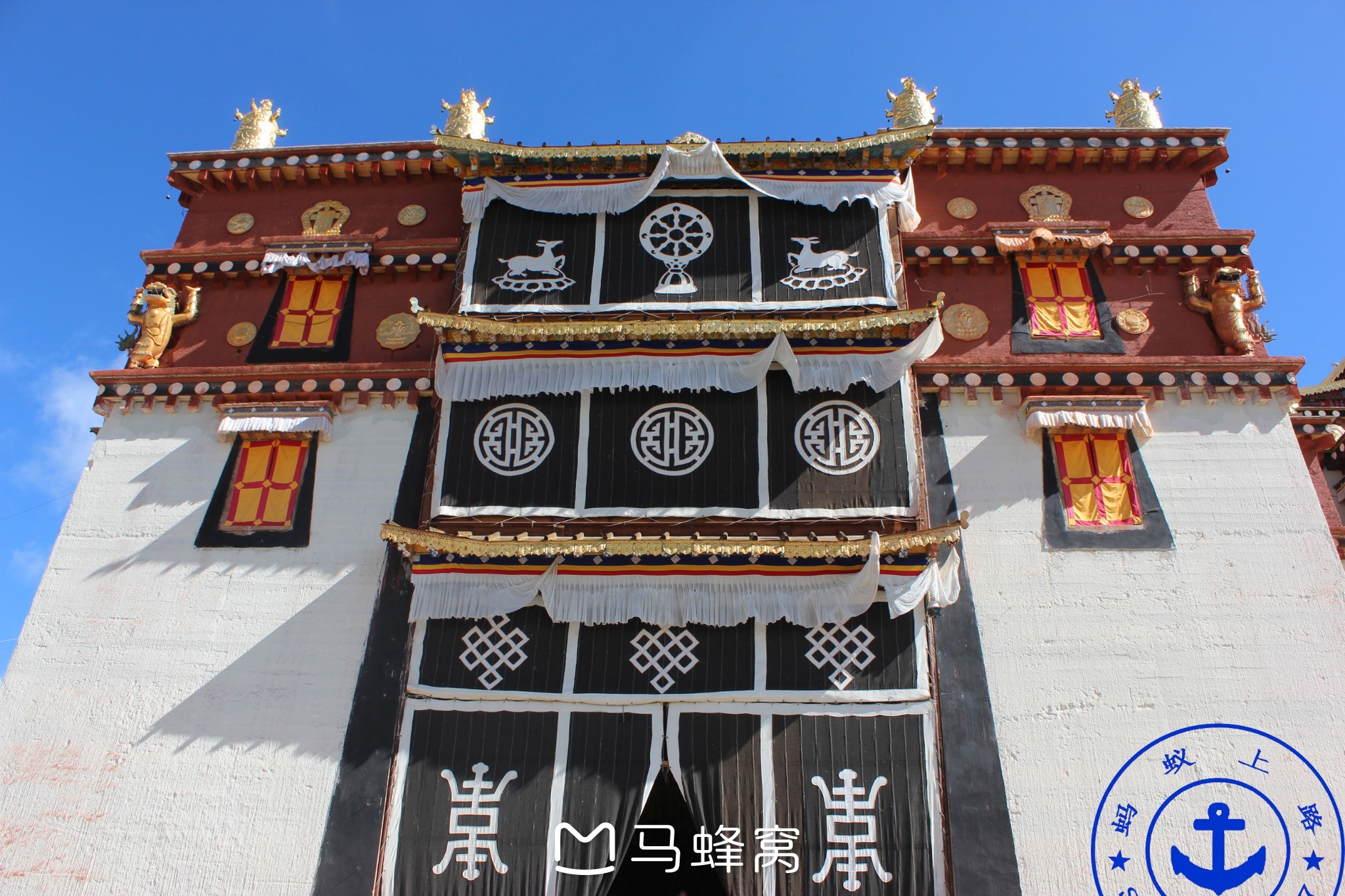穿过绘有佛家四大天王的大门,进入寺内,沿着中轴线上的台阶,慢慢攀爬。左右两侧分列着众多僧舍和八大康参中的“吉迪康参”,“洋塘康参”,“卓康参”。