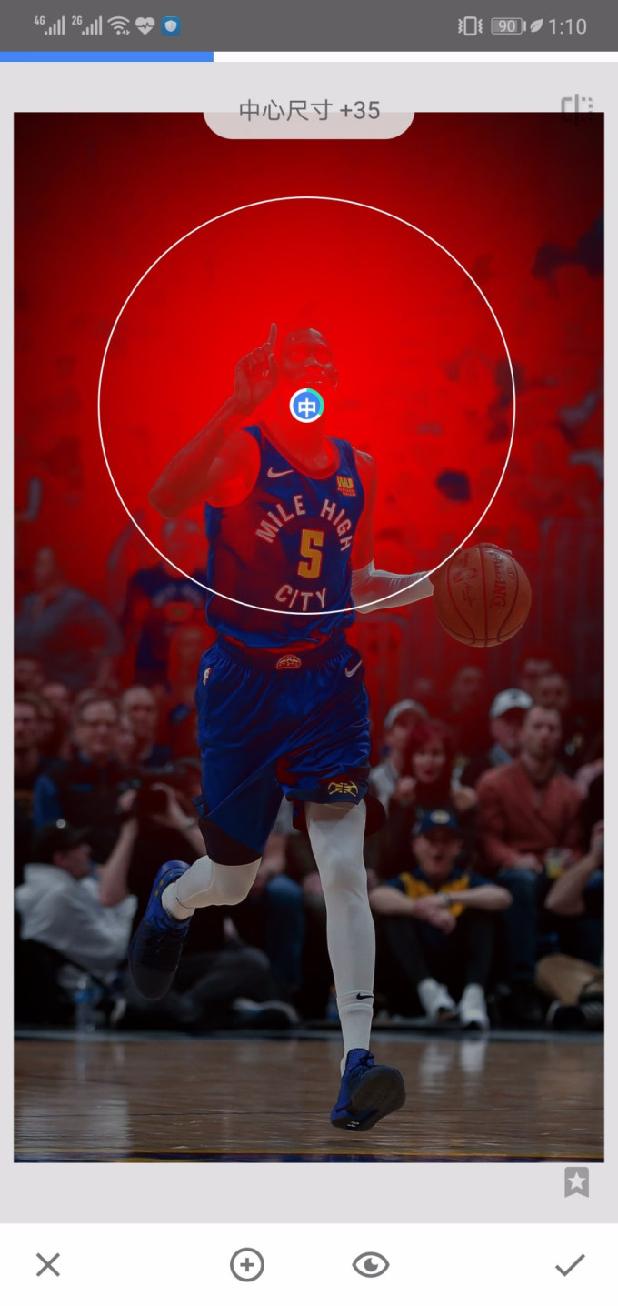 ▼然后用你妖娆的大拇指和食指在屏幕上拉出一道别样彩虹,这个圆圈就是控制你想分区曝光的范围。