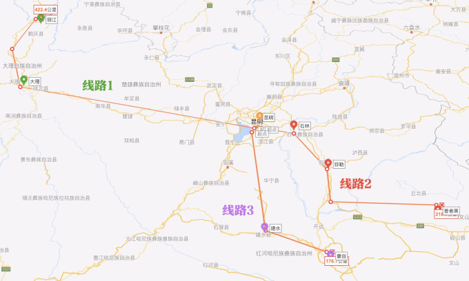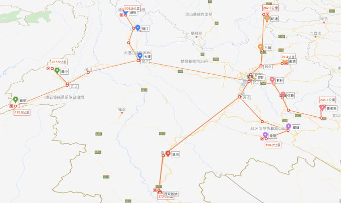下图就是云南呢旅行大动脉,当然还有很多迷人的小景,少数民族小寨就是比较深度的玩法了。