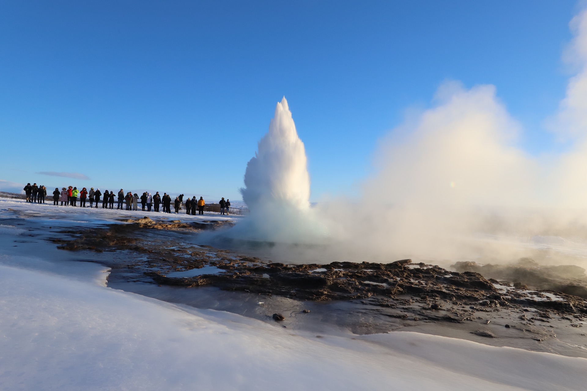 下一站去了间歇泉。然后我就开始发神经了。一直想拍间歇泉的蓝眼睛,应该用长焦拉近了拍,结果我那天在相机上套了个广角。还一路没有换镜头,还一路跟老闺蜜说:我没带后镜盖,路上也不方便换镜头。现在回想起来我委实不知道当时自己是怎么想的,可能被下降头了吧。车上换个镜头不是分分钟的事么?后镜盖这种说法就更是胡扯蛋了。好吧,我可能就是想再去一次冰岛,所以才故意为之吧。