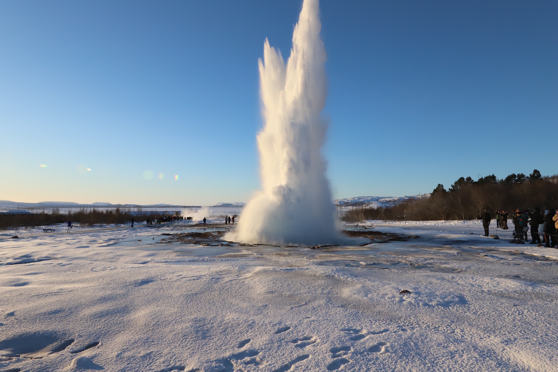 拍间歇泉真是个辛苦活。端着相机等,感觉手都不是自己的了。外加自己手小,带手套总觉得大,操作起来不够灵活,索性就不带手套了。啊,零下十度的天啊,妖风阵阵,我当时一定是疯了。冻的我最后连快门都按不动了。这里我又要反思自己了。为什么不带三脚架?因为嫌重,扔酒店了。为什么不带快门线?因为高估了自己的抗冻能力。觉得自己徒手拍木有问题。事实告诉我,我就是太自以为是了。三脚架,快门线很重要!!!