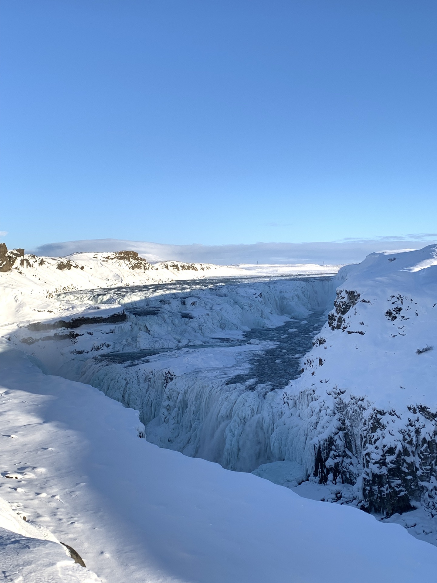 随后去了黄金瀑布。地面结冰太厉害,风太大,我实在是无力找到一个好的机位来拍出这个瀑布的壮丽啊。只用手机拍了两张,以显示我到此一游了。此刻心中又默默想了一遍,等夏天再来一次吧。