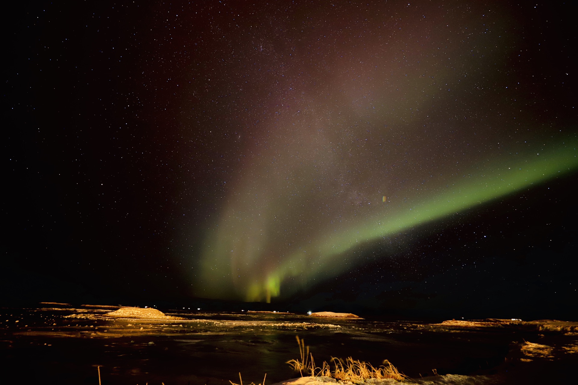 当天晚上就出门追极光。运气很好,从雷克雅未克市区开出去没多久就看到了极光。